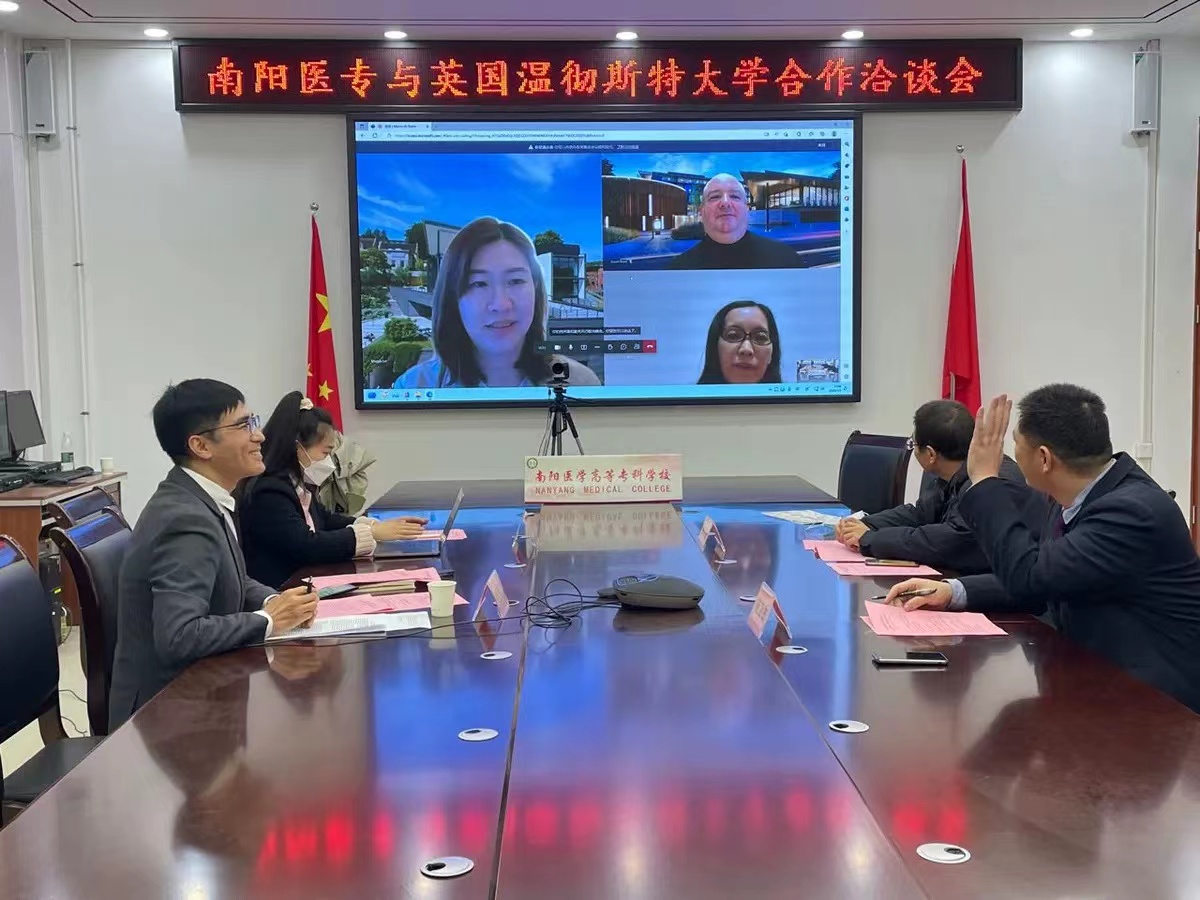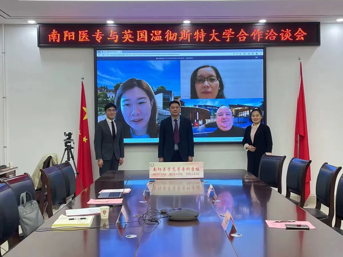本网讯(文/对外交流合作处 夏灵果)1月4日,我校在仲景西区3号教学楼423远程会议室与英国温彻斯特大学、马来西亚国家考试委员会召开校际合作线上洽谈会。校党委委员、副校长张国良出席会议并发表致辞,温彻斯特大学国际处处长大卫先生、马来西亚国家考试委员会主任西西女士分别通过Microsoft Teams meeting、腾讯会议线上参会,国际教育学院院长李弋及对外交流合作处工作人员参加。会议由对外交流合作处处长范卫杰主持。
