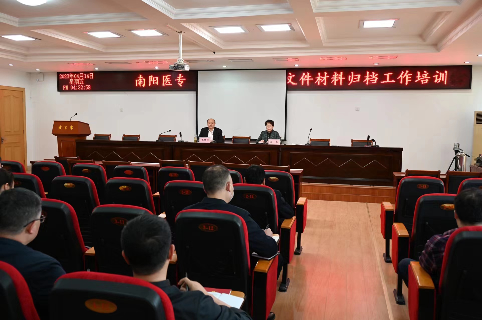 本网讯(文/档案中心 梁明春)为了扎实推进我校文件材料归档工作,确保归档工作高质高效完成,2023年4月14日,我校在仲景西区行政楼五楼会议室召开文件材料归档工作推进会暨文件材料归档移交培训会。党委委员、副校长张胜海出席并主持会议。学校各部门(单位)分管档案工作的领导和兼职档案员共80余人参加会议。