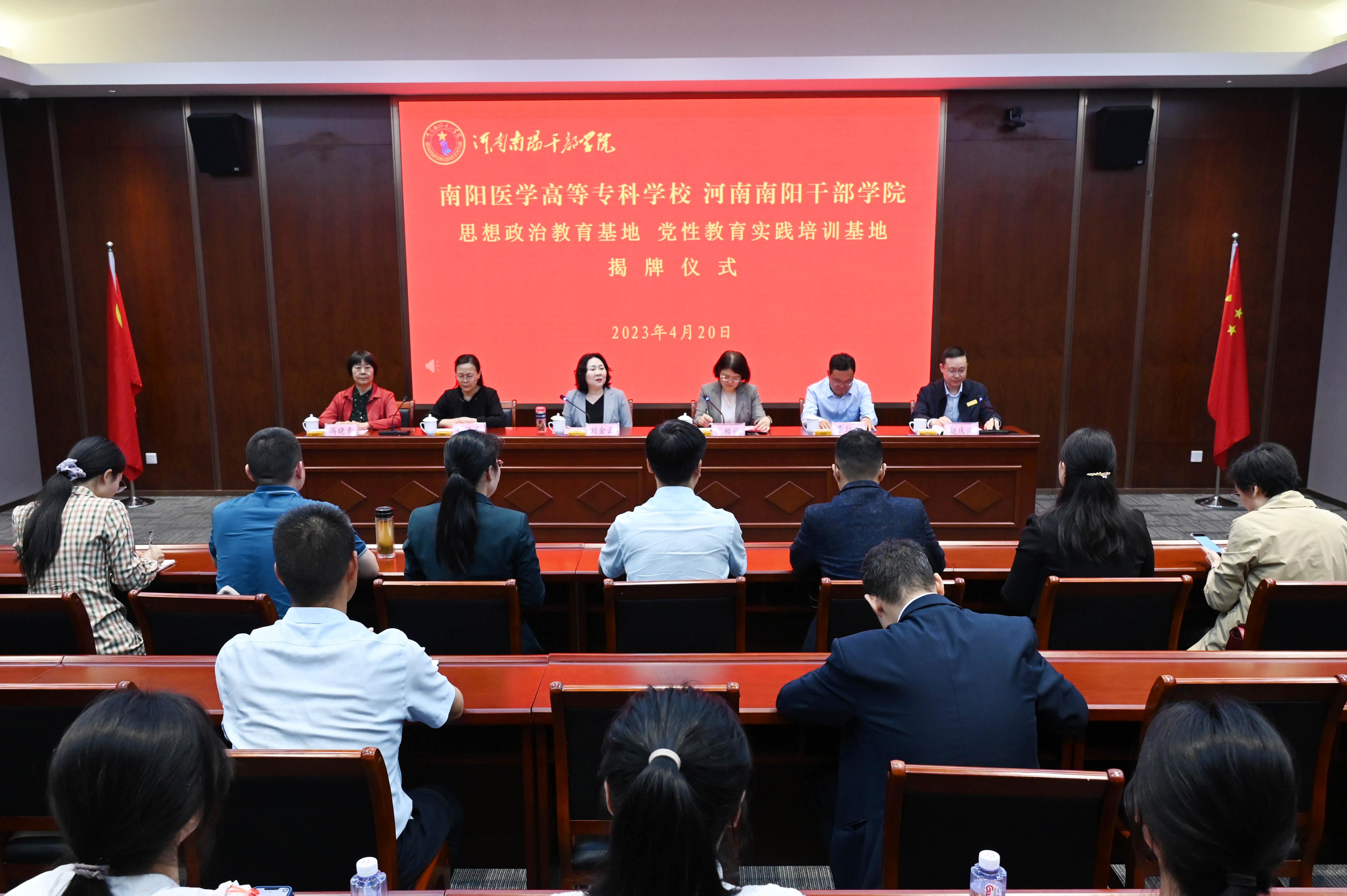 签约仪式上,王楷楠、刘金云分别代表河南南阳干部学院和南阳医专在战略合作框架协议上签字,并共同为南阳医专思想政治教育基地、南阳医专党性教育实践培训基地揭牌。