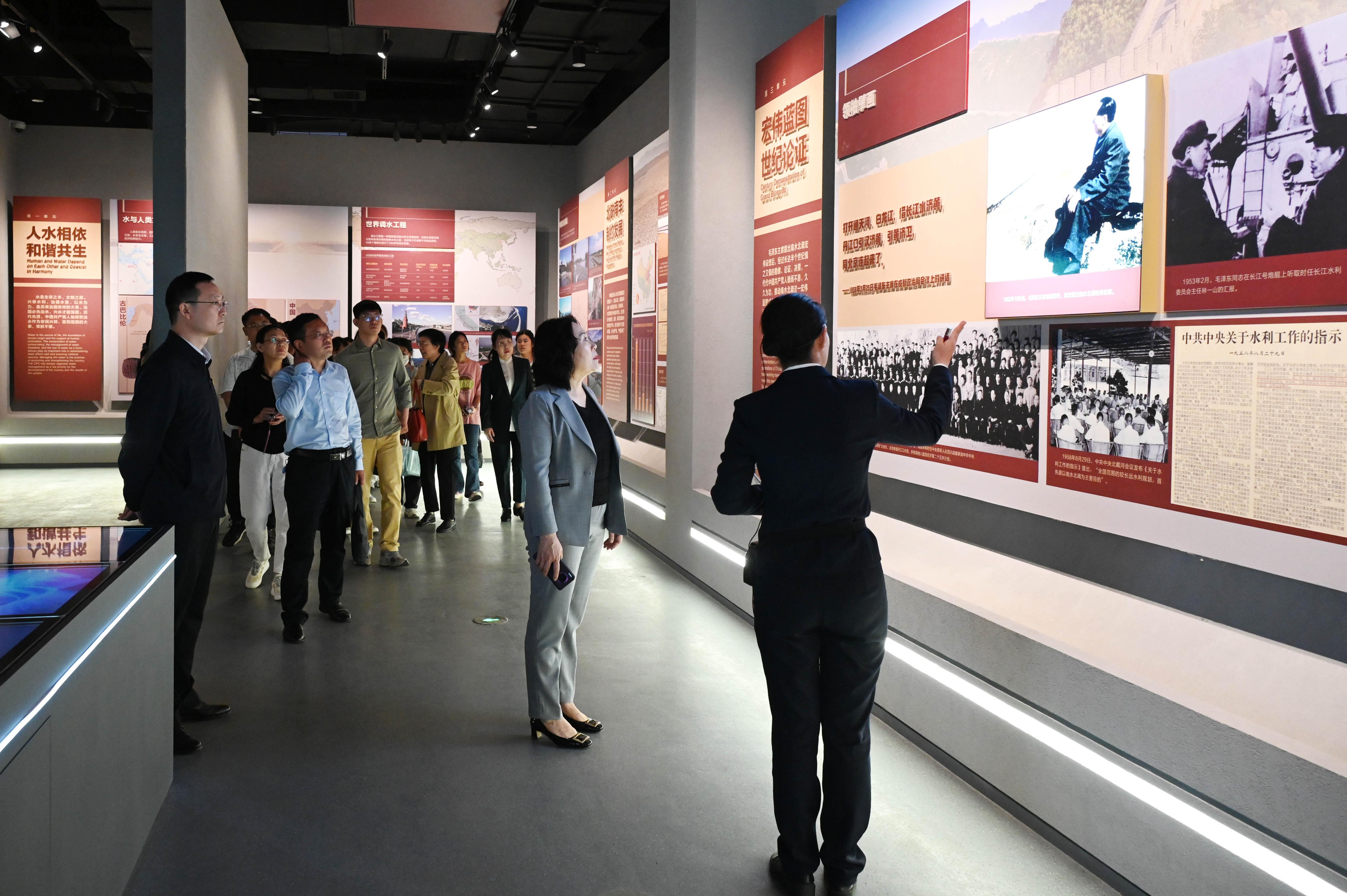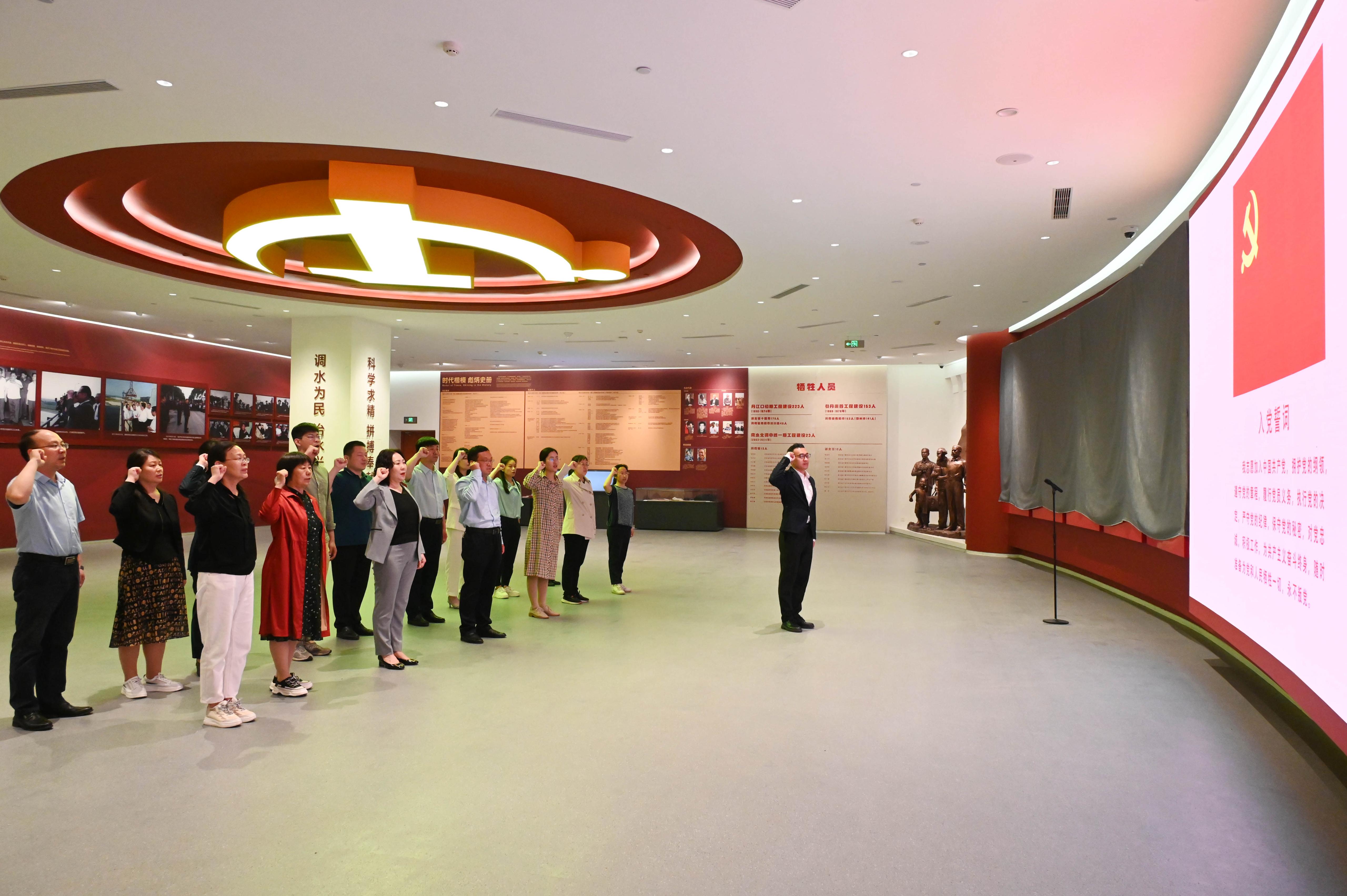 随后,与会人员参观了南水北调展览馆,党委组织部带领先进基层党组织代表开展党性教育现场观摩学习,马克思主义学院师生在展览馆内就南水北调精神学习开展现场教学。大家认真聆听讲解员的生动介绍,仔细瞻仰一件件实物、图片,为伟大的南水北调精神、移民精神所震撼,也接受了一次深刻的精神洗礼。