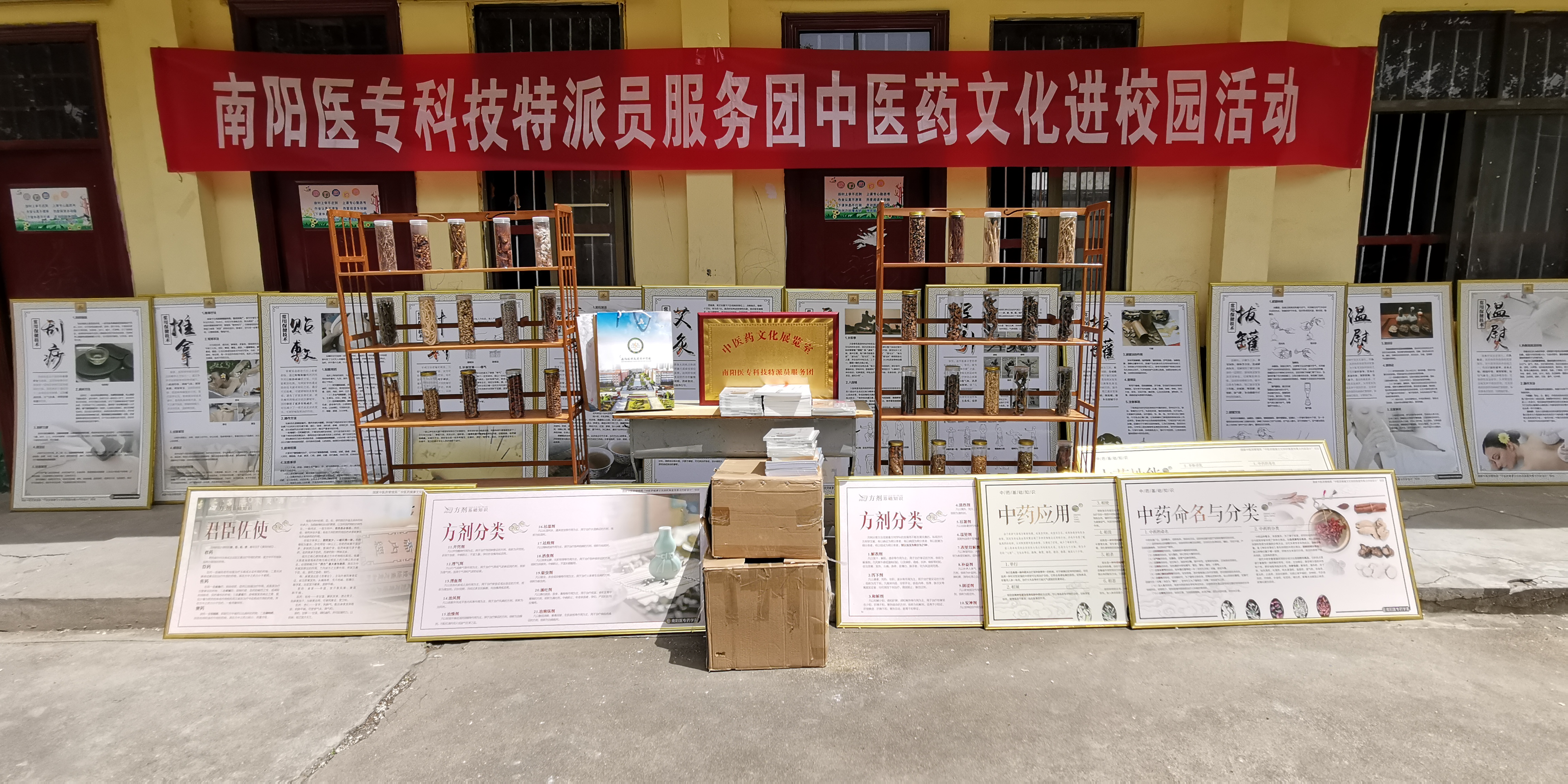 送文化。在官坡岭村陈庄小学,为当地小学生开展了中医药文化进校园活动。首先,进行中医药文化展览室授牌,向陈庄小学捐赠了价值2万元的中草药标本、中医药文化展板和中医药文化等相关书籍。