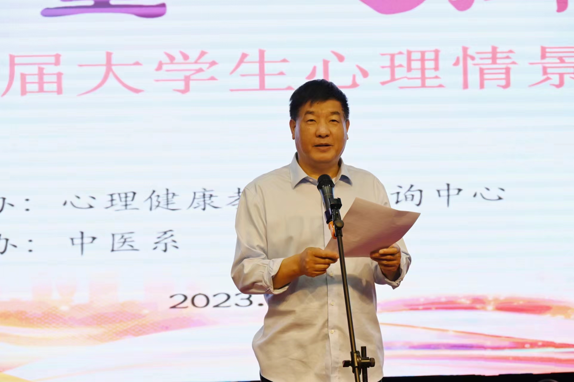 本网讯(文/学生处 张童童)为加快推进心理健康教育工作标准化建设,进一步普及心理健康知识,帮助大学生树立正确的心理健康观念,5月25日——“大学生心理健康日”当天下午,我校于学校仲景东区礼堂隆重举行了南阳医专第十七届大学生心理情景剧大赛决赛。校党委委员、副校长郭万周出席大赛并致辞。各系(院)领导、老师及学生代表500余人现场观看了比赛。