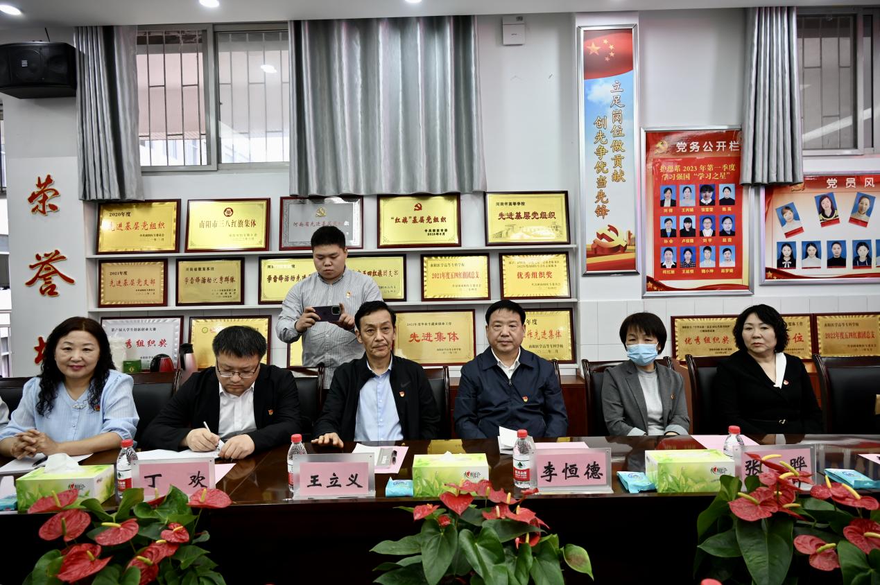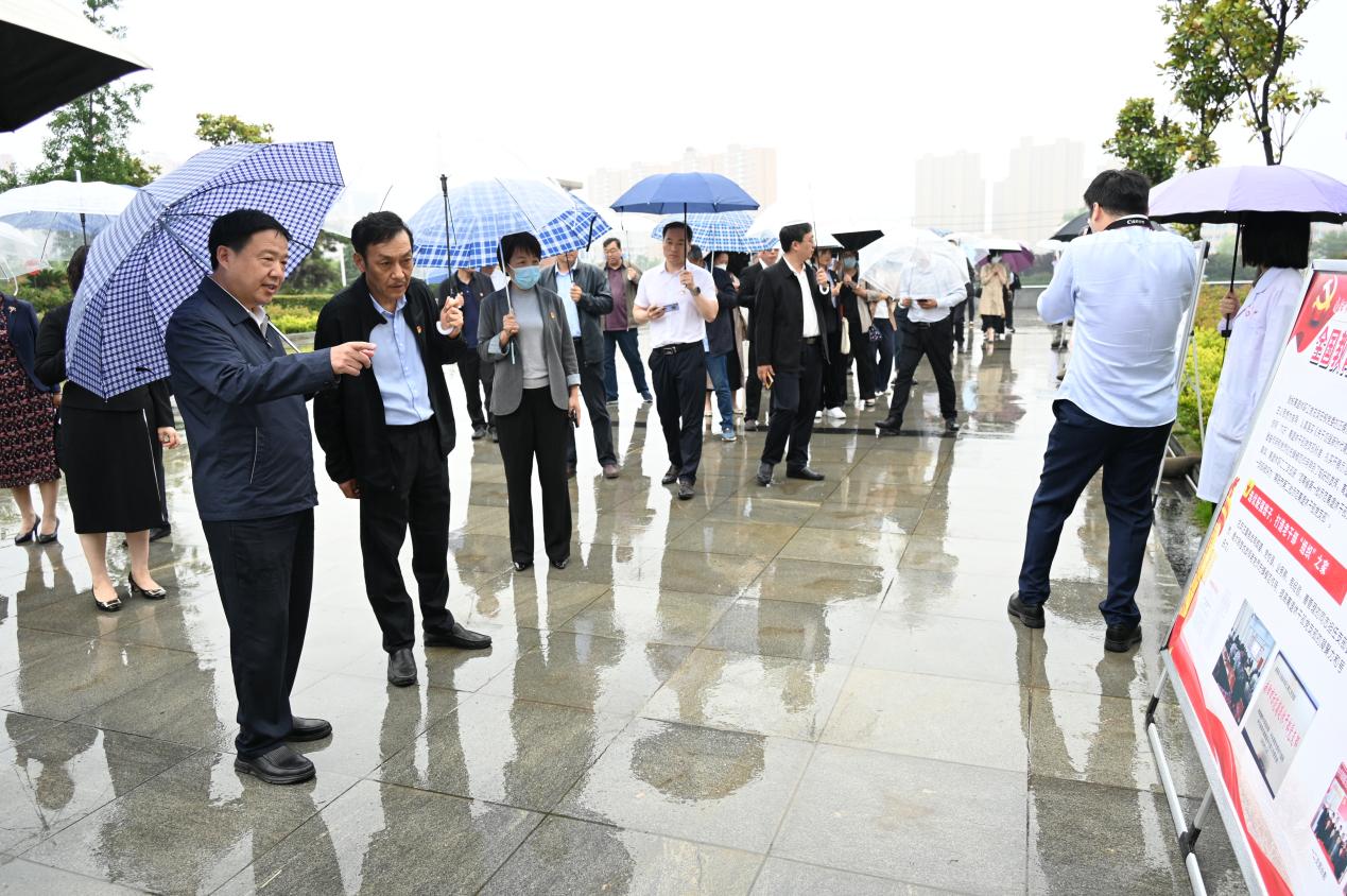 本网讯(文/组织部 武乐宁)为深入推进学习贯彻习近平新时代中国特色社会主义思想主题教育,推动市属高校样板党支部建设工作提质增效, 5月26日,在南阳市委组织部二级巡视员、市党建研究会常务副会长李恒德的带领下,南阳市属高校样板党支部建设观摩团来到我校进行观摩指导高校样板党支部建设工作。校党委副书记、校长王立义与校党委委员、纪委书记刘金云陪同观摩,组织部、统战部、临床系、护理系及相关部门和各基层党组织书记参加了观摩活动。