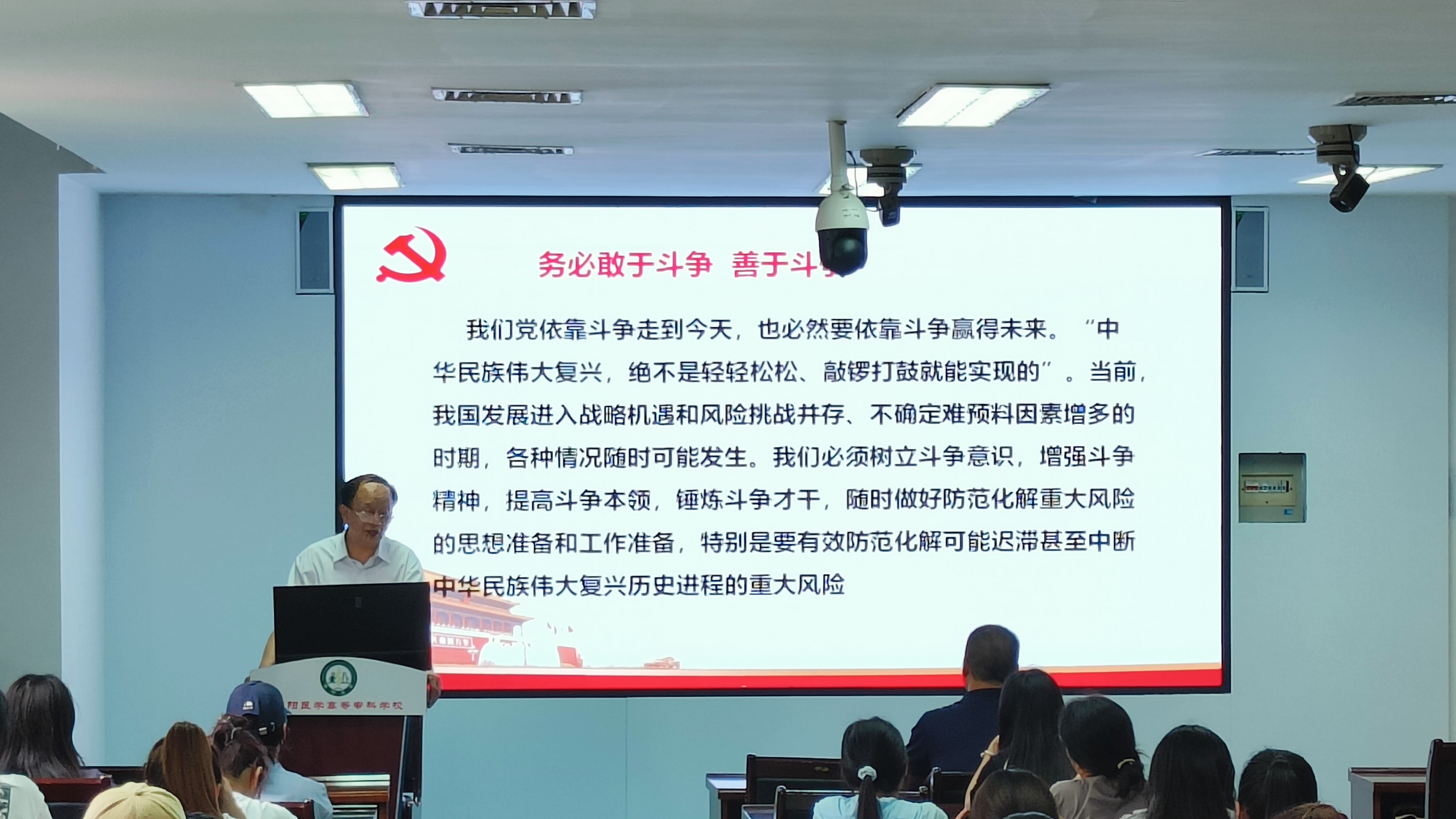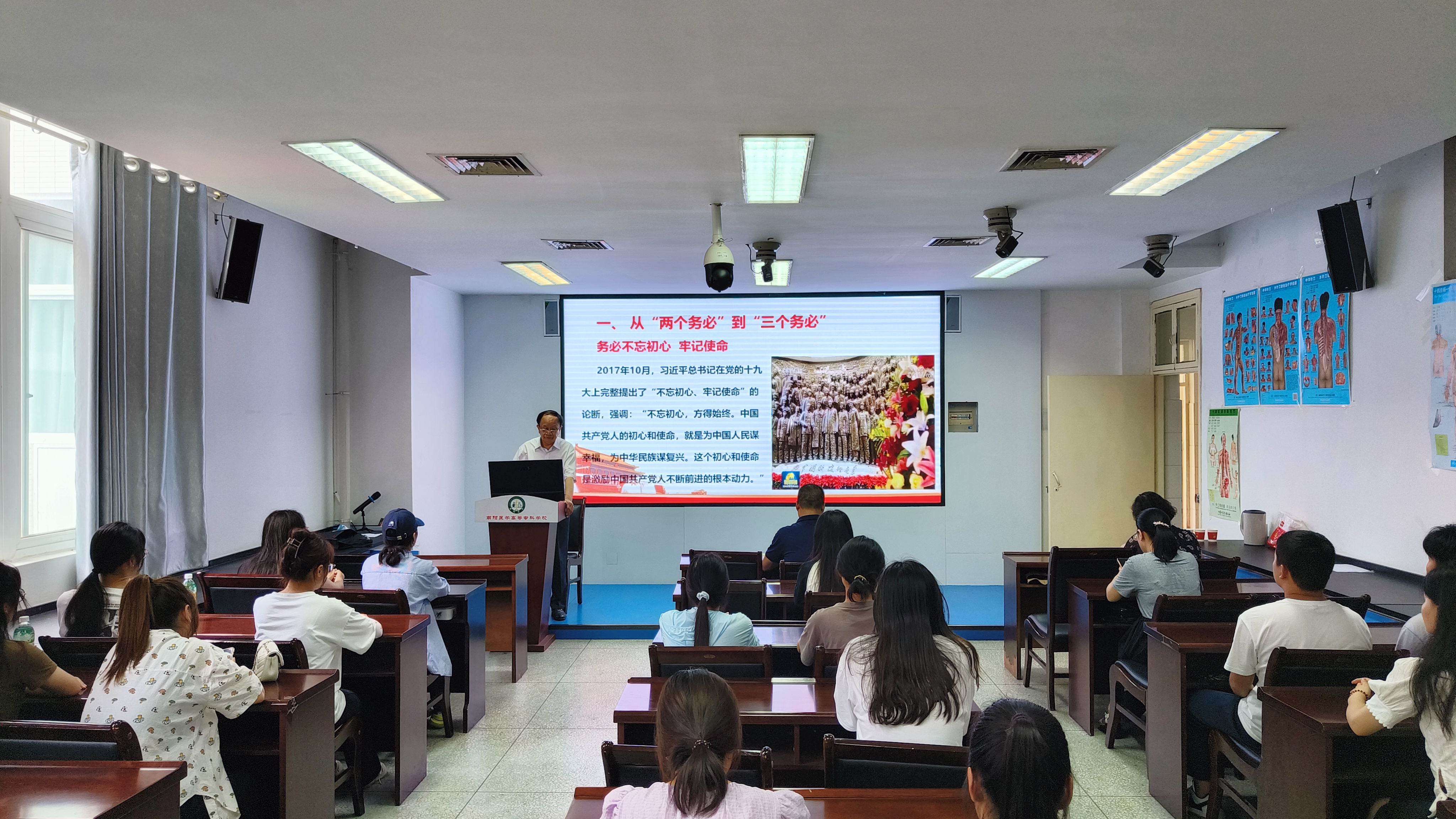 本网讯(文/离退处 朱迪 临床医学系 张佳媛)6月20日下午,我校在仲景西区4号教学楼举行南阳医专关工委临床医学系专场报告会。学校关工委常务副主任张金虎教授作宣讲报告。临床医学系领导、全体辅导员和80余名学生代表参会。报告会由临床医学系党总支书记秦玖刚主持。