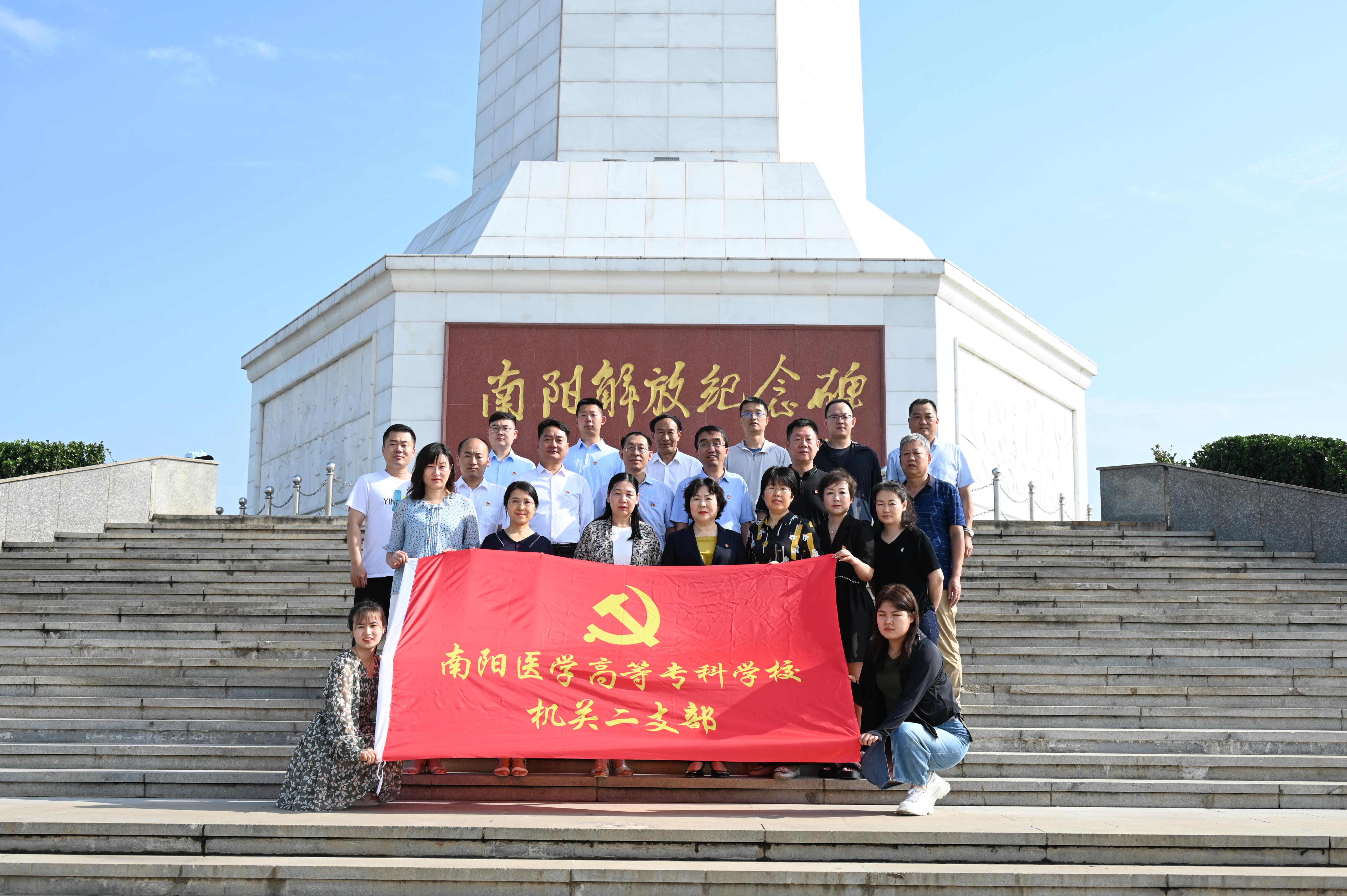 机关二支部全体党员首先面向南阳解放纪念碑,向革命先烈鞠躬致敬,深切缅怀为革命事业顽强拼搏、英勇献身的先烈,追忆先烈们的丰功伟绩,寄托无限哀思和崇敬之情。接着支部书记孟晓红带领全体党员面向党旗重温入党誓词,庄严宣誓。铮铮誓词也让每一位党员心潮澎湃,精神振奋。最后,刘金云书记带领大家瞻仰南阳解放纪念碑,组织委员李建效为大家进行了详细讲解。