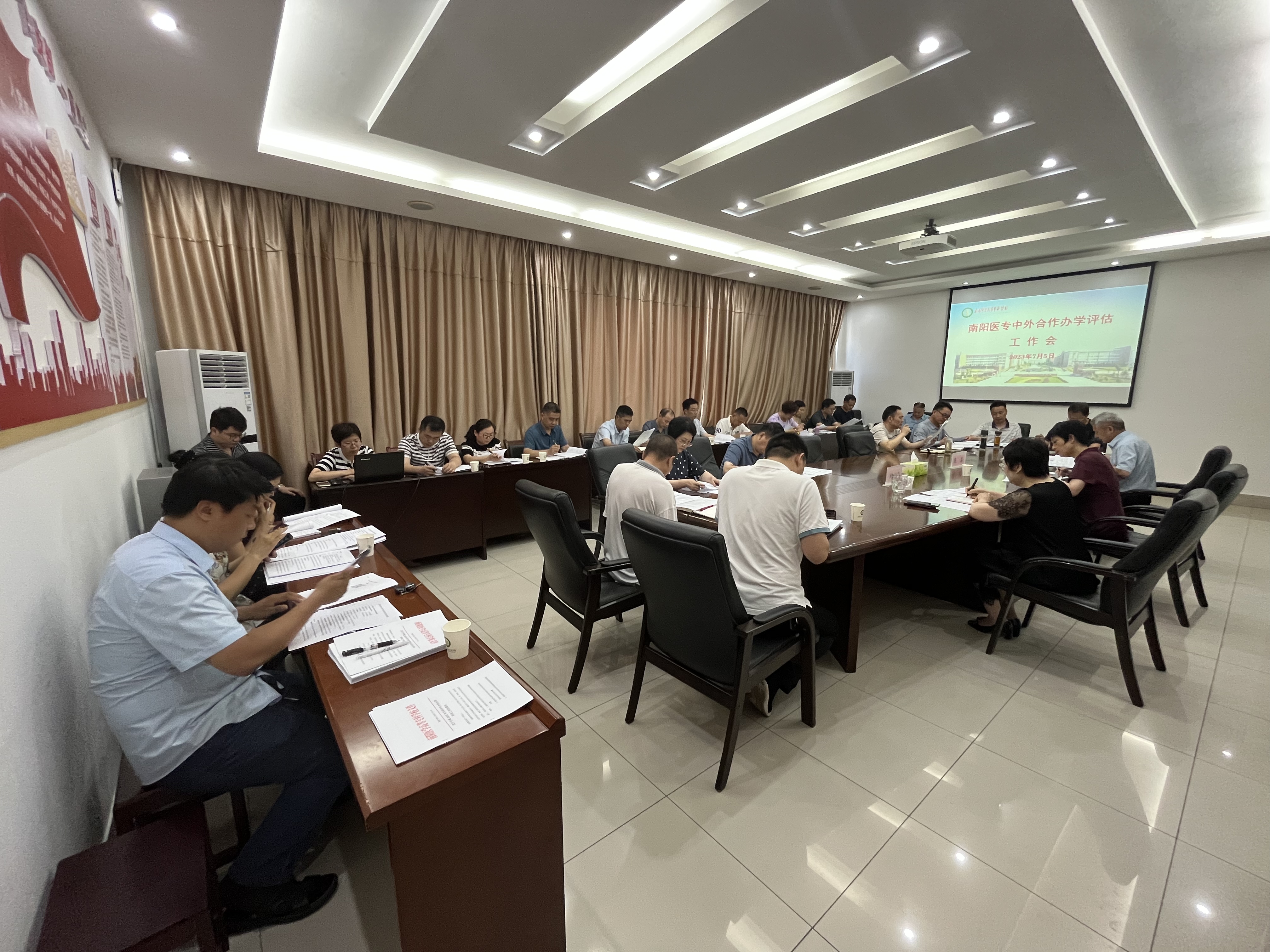 本网讯(文/国际教育学院 张蕊)7月5日下午,南阳医专中外合作办学评估工作会在仲景西区一号办公楼三楼会议室召开。副校长范真、纪委书记刘金云、副校长郭延东及相关部门负责人参加会议。会议由纪委书记刘金云主持。
