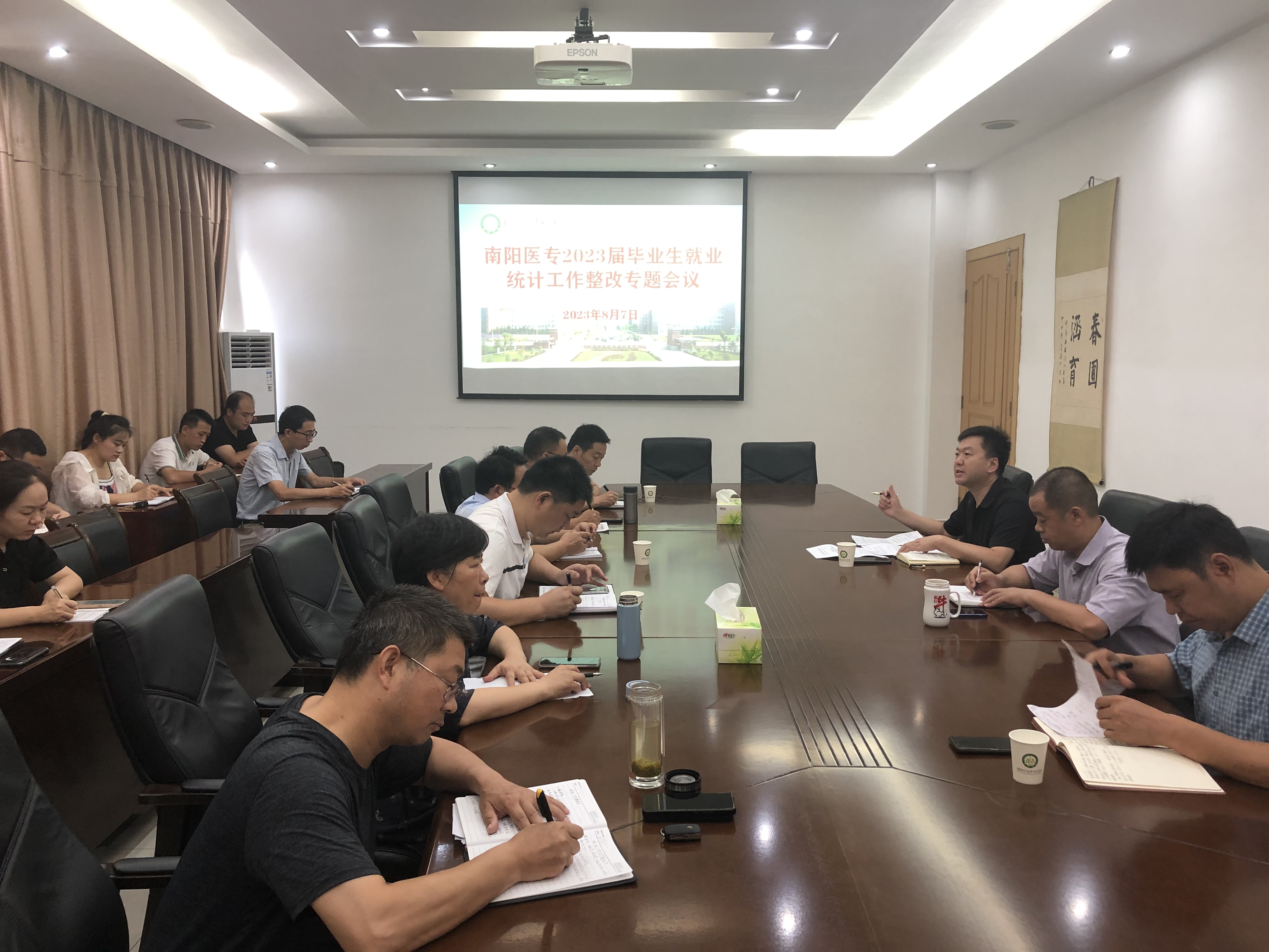 本网讯(文/就业创业处 张辉 华俊皓)为贯彻落实河南省教育厅办公室关于开展2023届高校毕业生就业统计专项核查工作的通知要求,确保我校毕业生就业统计上报数据的真实准确,8月7日上午,我校2023届毕业生就业统计工作专题整改会议在行政楼3楼2号会议室召开,党委委员、副校长秦玖刚出席会议并讲话,各系院书记、副书记、学工办主任、就业专干及就业创业处全体人员参加会议。会议由就业创业处处长刘鹏主持。