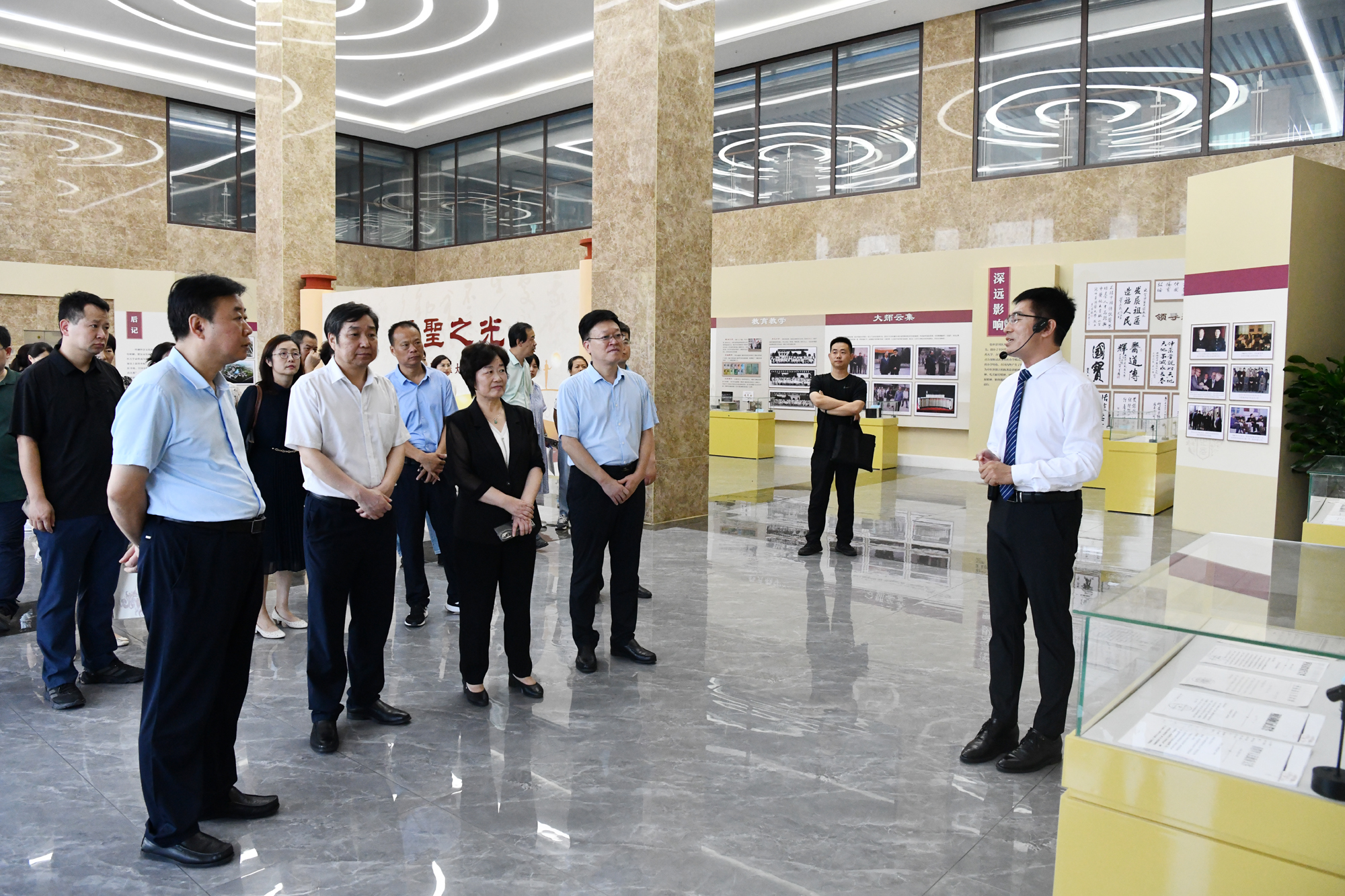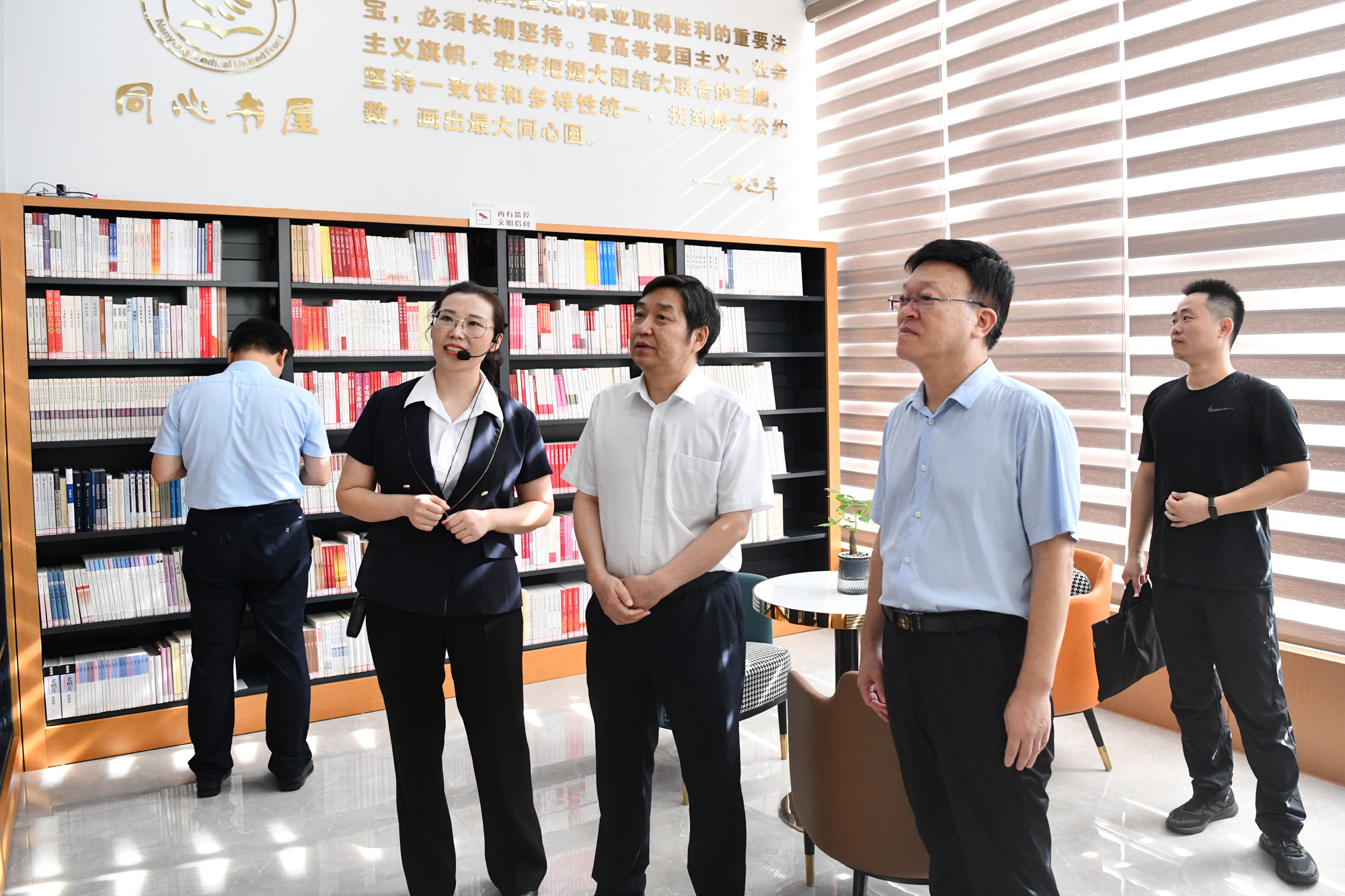 柳锋波一行参观了我校同心书屋、仲景特藏馆、人体生命科学馆、非遗传承创新中心、校史馆、中医药科技馆等,并与学校师生就中医药传承发展等进行了交流。随后,柳锋波一行来到南阳医专支部“盟员之家”参观考察,并召开主题教育座谈会,与基层盟员们沟通交流,了解主题教育工作中存在的问题,听取意见建议,华道梅代表市委会汇报了南阳民盟主题教育工作开展情况,阮耀、李艳丹、高有耕分别代表南阳医专支部、南阳理工学院支部和文教支部作了发言。