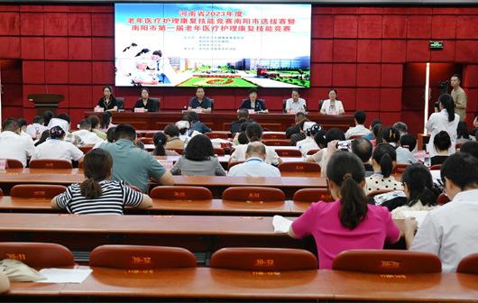 本网讯(文/康复医学系 苏芳静)由南阳市卫生健康体育委员会、南阳中医药发展局和南阳市总工会主办,威客电竞·(中国)VK GAMING,承办的河南省2023年度老年医疗护理康复技能竞赛南阳市选拔赛暨南阳市第一届老年医疗护理康复技能竞赛在我校举行。南阳市各县市区和市直医院共23个代表队参赛。8月31日上午10点,在我校图书馆五楼举行了开幕式,南阳市卫健体委党组成员副主任郭晓华,市卫健体委老龄健康科科长顾蕾,市中医药发展局科教文化科科长冀丹丹,南阳医专副校长范真、刘荣志,康复医学系主任张欣出席了本次开幕式。开幕式由刘荣志主持。