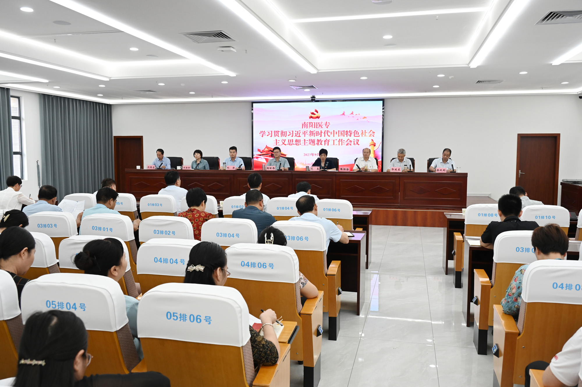 本网讯(文/宣传部 李峰松 张旭斌)9月13日下午,我校在仲景文化中心会议室,隆重召开学习贯彻习近平新时代中国特色社会主义思想主题教育工作会议。校领导柳明伟、范真、刘涛、张胜海、刘金云、郭延东、刘荣志、秦玖刚出席会议,校本部全体副科级以上领导干部,各基层党组织教师党支部、学管党支部书记,二、三附属医院书记、院长参加会议。党委书记柳明伟作重要讲话,校长范真主持会议。