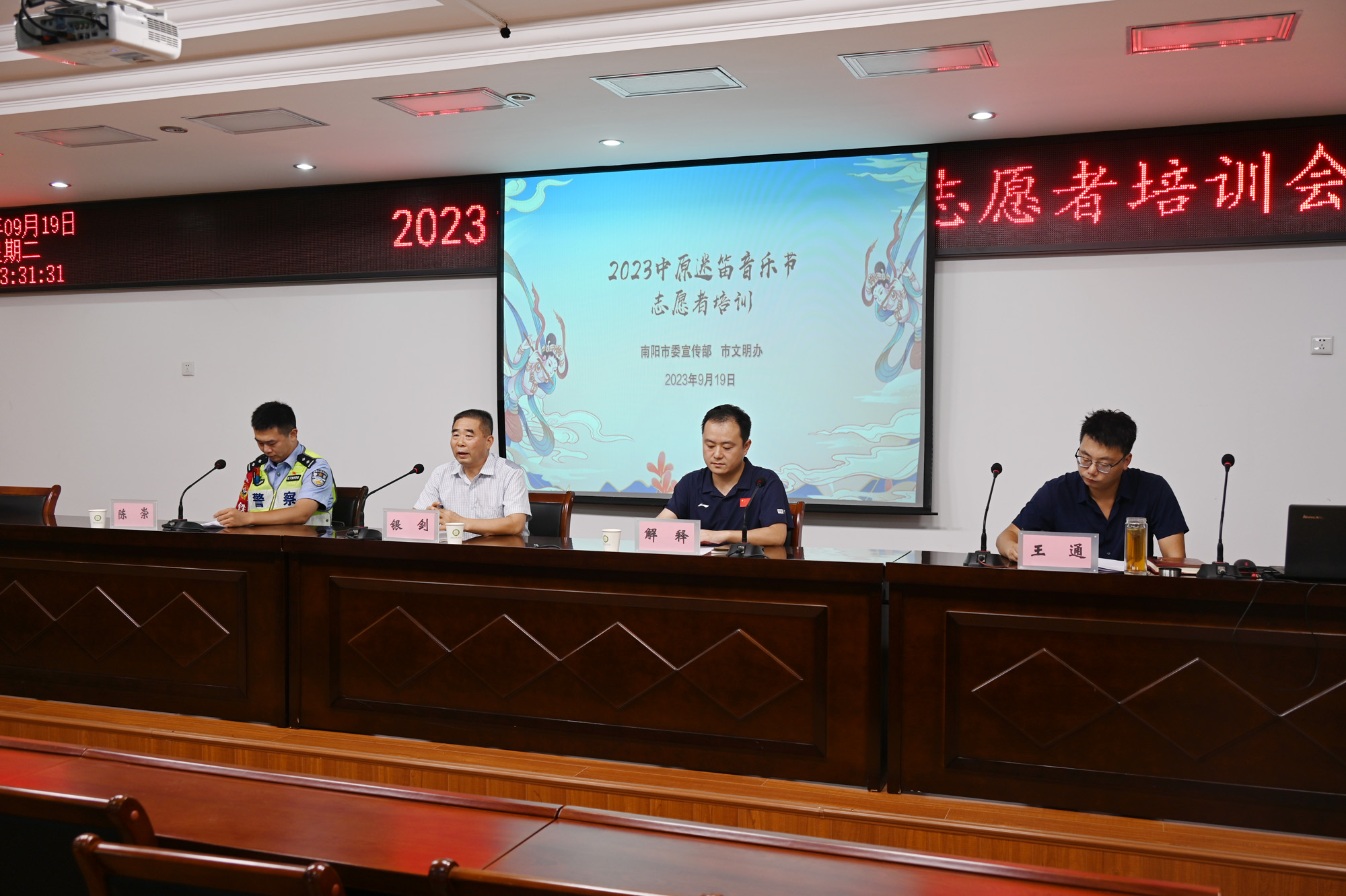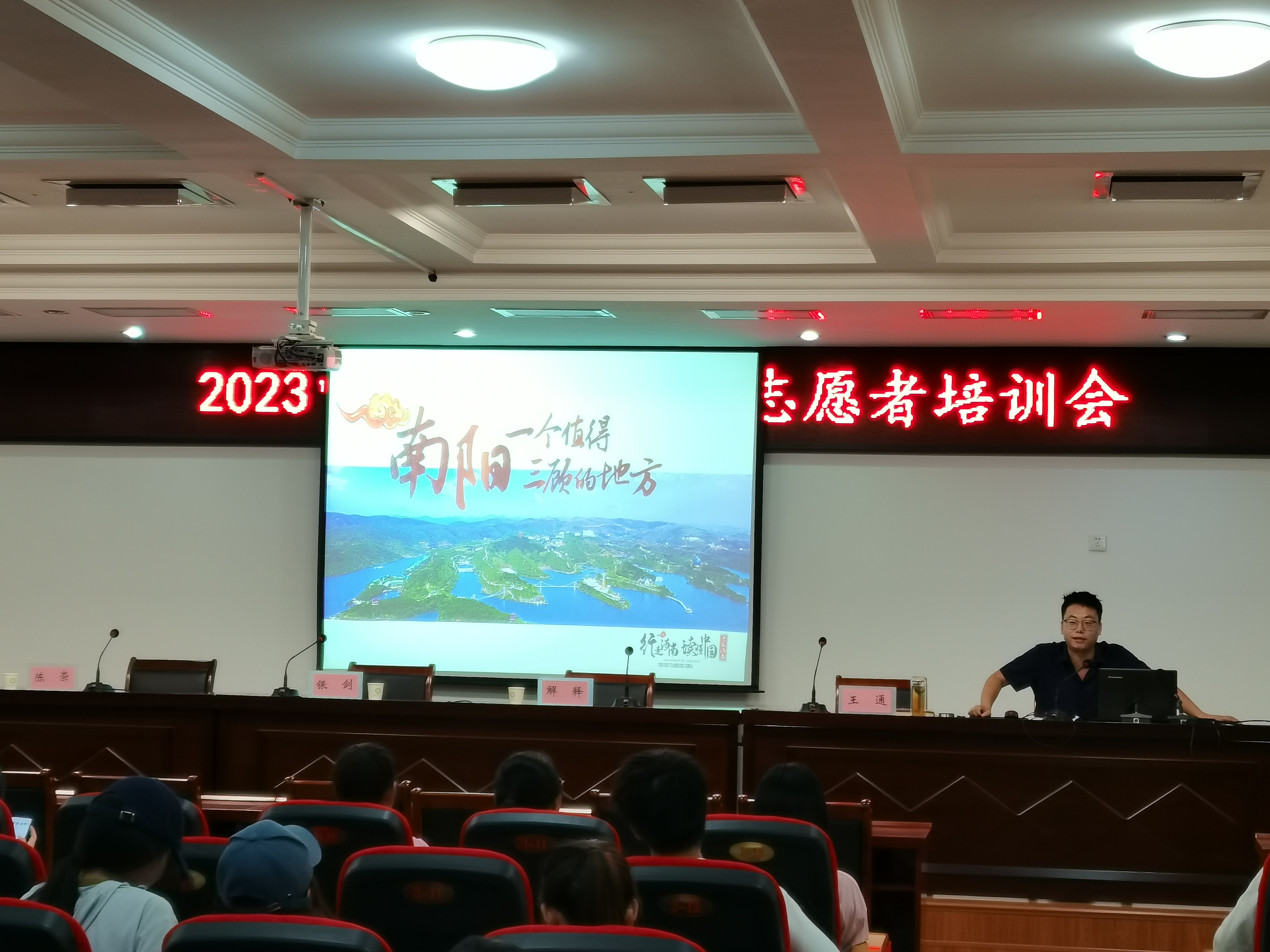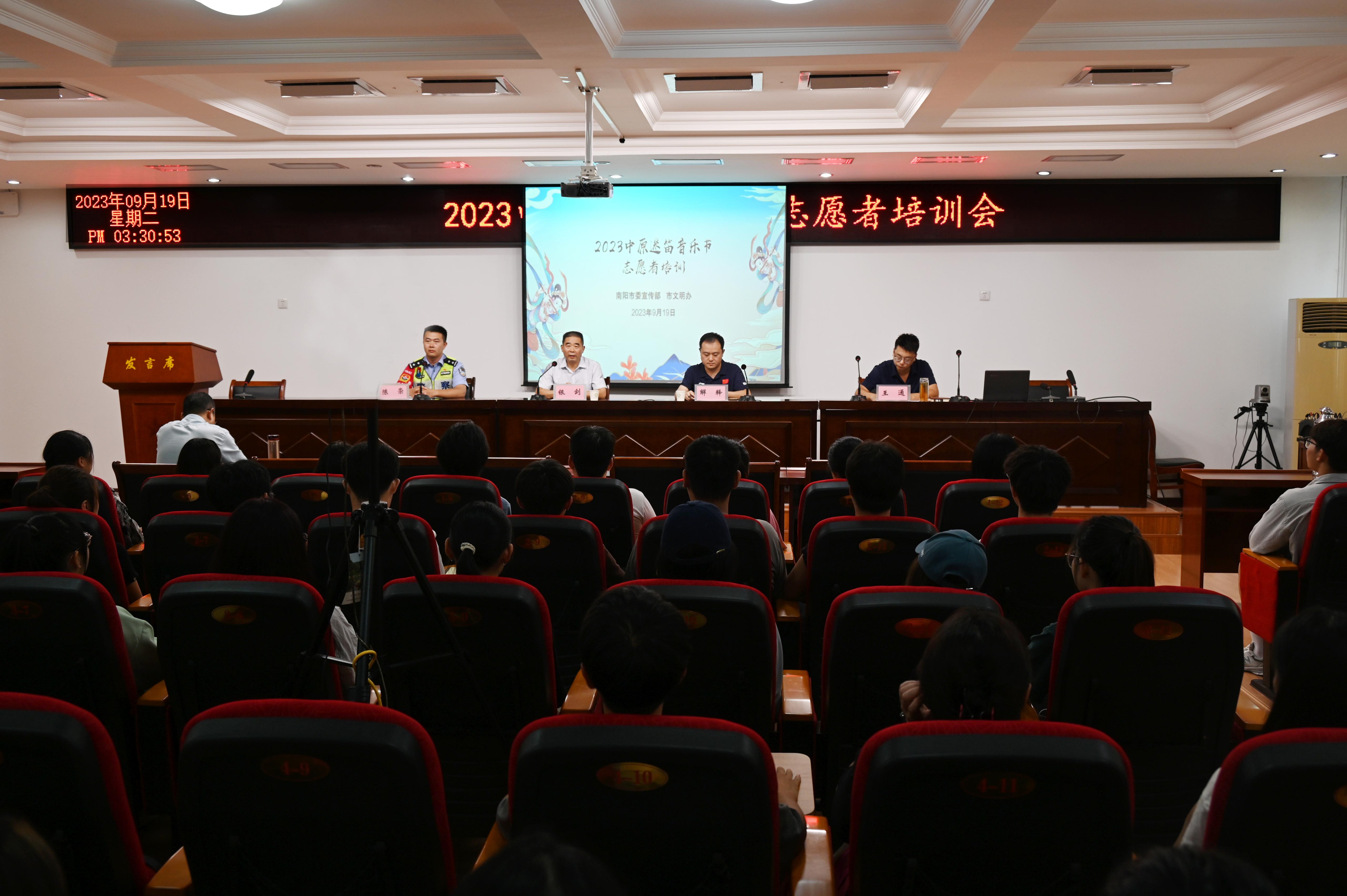 本网讯(文/宣传部 张旭斌)9月19日下午,由南阳市委宣传部、市文明办主办的2023中原迷笛音乐节志愿者培训会在我校举办。市委宣传部二级调研员银剑出席培训会,市文明办解释、市公安局交警支队陈崇、市文广旅局王通分别作专题培训。南阳师院、南阳医专的100余名志愿者在主会场参加培训,全市各相关单位志愿服务工作负责人、志愿者骨干等人员通过腾讯直播方式在各分会场收看学习。