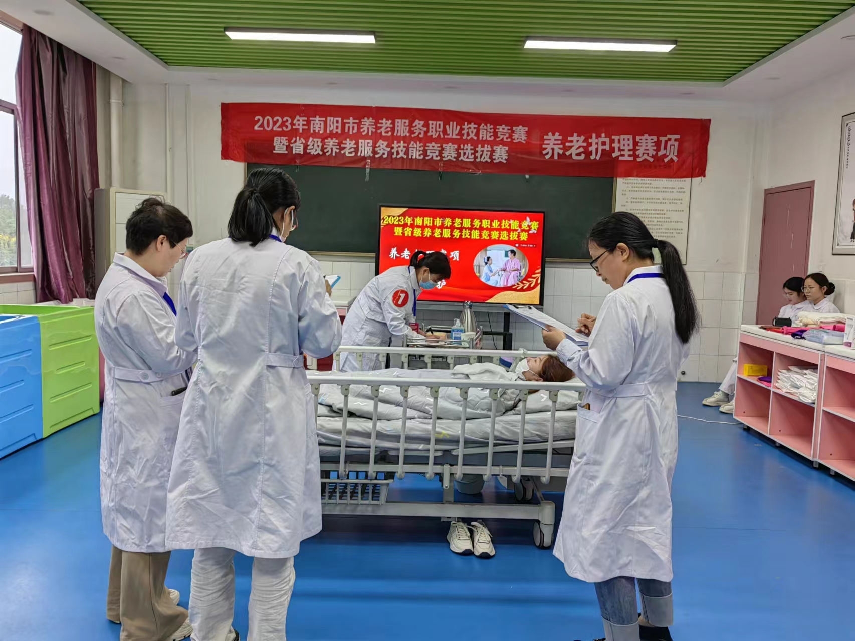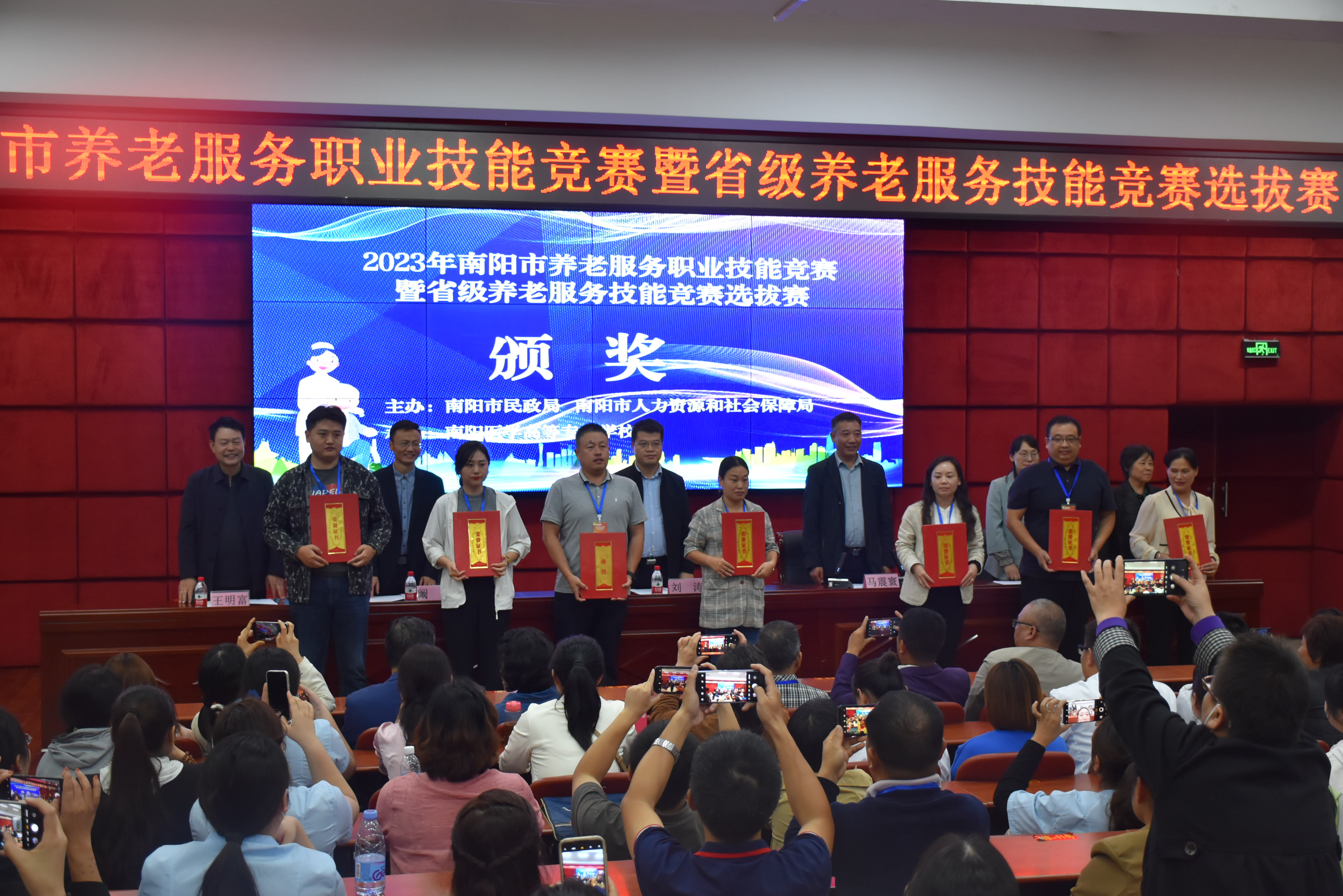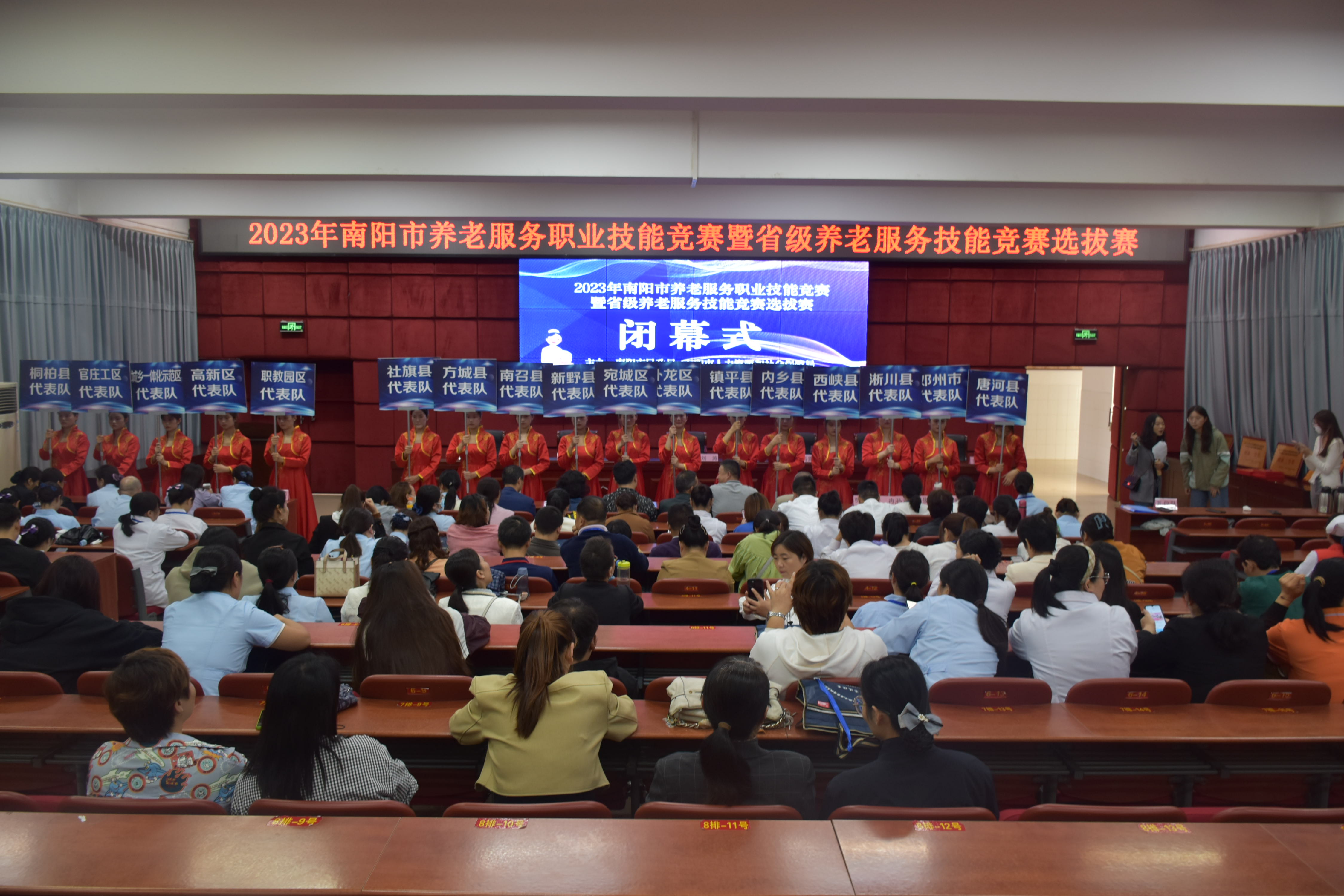 南阳市民政局党组成员、副局长马震寰,南阳市养老服务中心主任李红岩,南阳市人力资源和社会保障局职建科科长阚浩,南阳市养老服务中心副主任王明富,南阳医专党委副书记刘涛、护理系主任吕云玲出席闭幕式,并为获奖单位和选手颁奖。