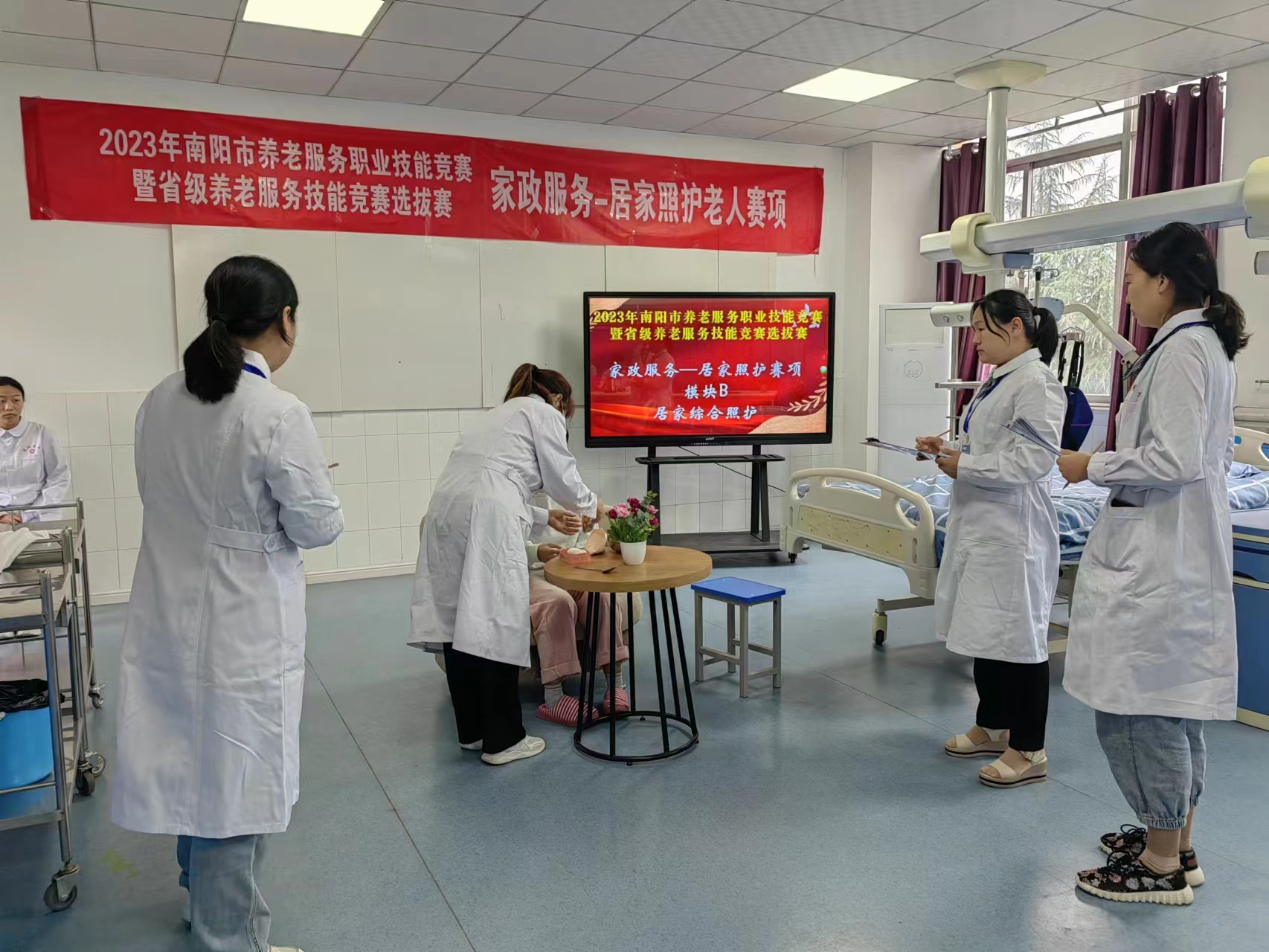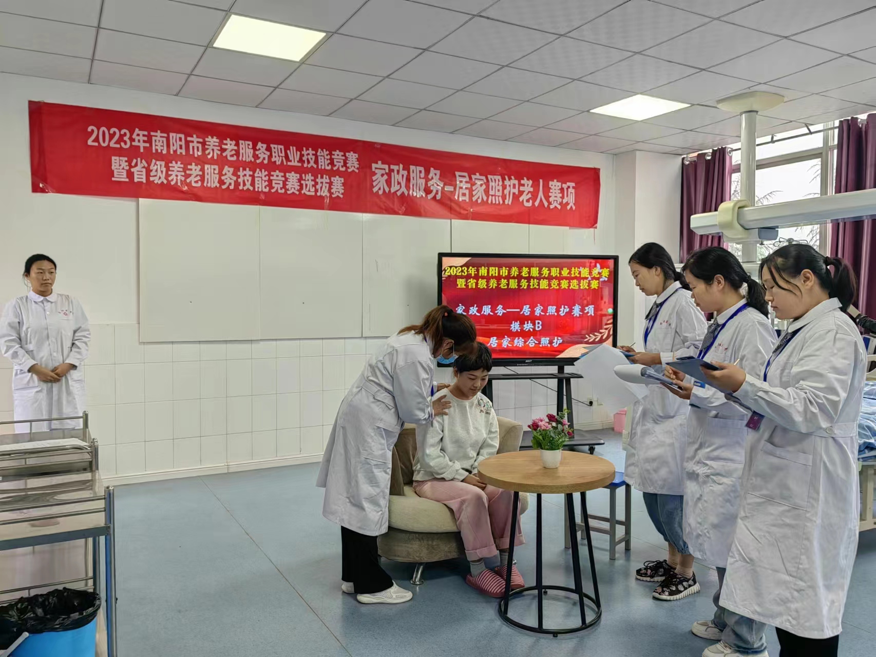 本次大赛分两个阶段,第一阶段在9月21日至9月22日进行两天的赛前培训,主要对各县市区学员进行养老服务理论培训和各赛项操作技能项目培训;第二阶段在9月23日-9月24日进行竞赛,竞赛共有养老护理、健康照护、家政服务3个赛项,每个赛项又分为理论知识考核和技能考核两部分。经过两天激烈角逐,周璐瑶、吕新荣、石金草、侯苗苗、丁纪红、盛德红6位选手分别获三个项目个人单项一等奖,邓州市代表队荣获得团体一等奖,官庄工区、社旗县、方城县、内乡县等代表队荣获优秀组织奖。