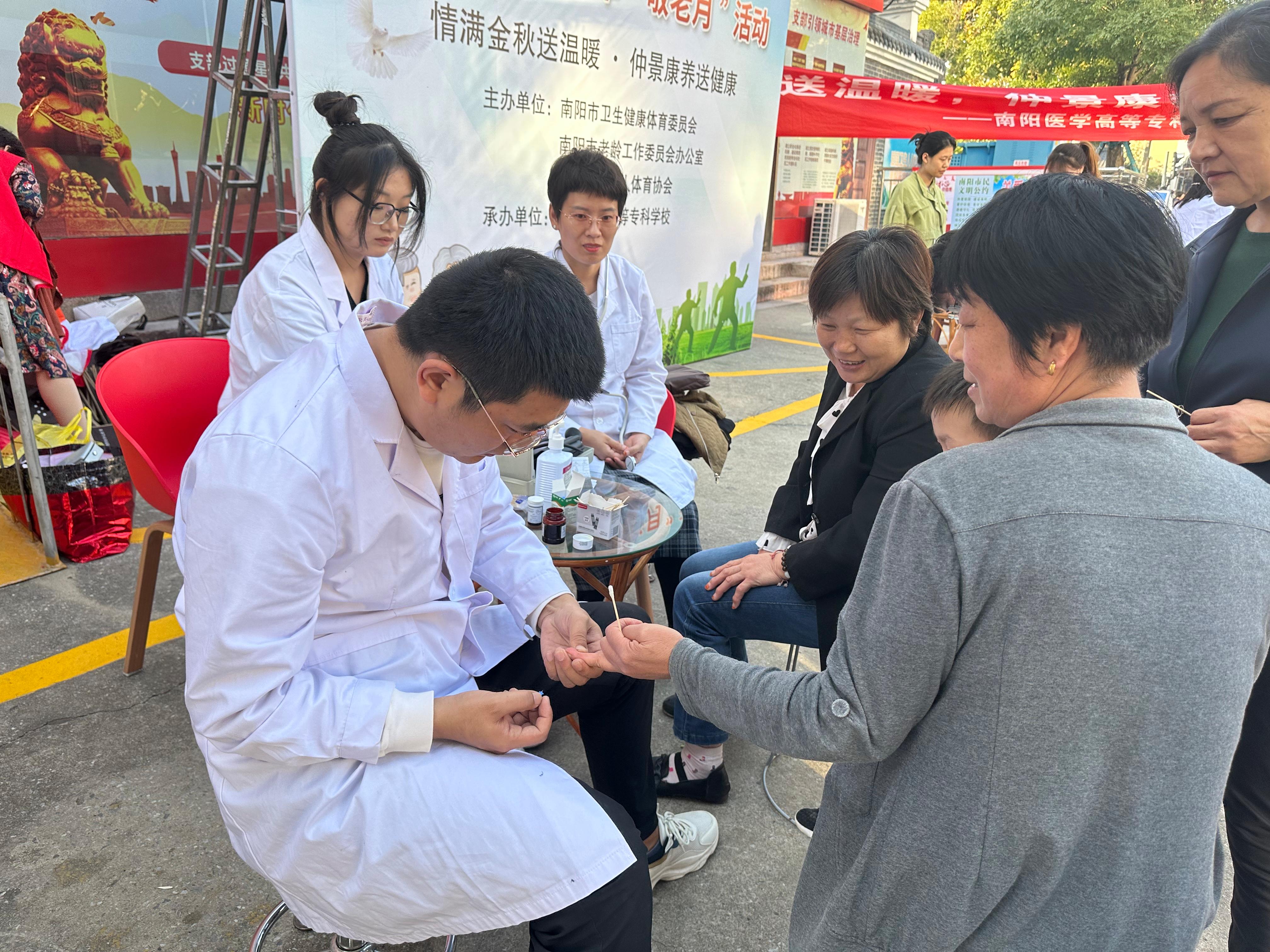 本网讯(康复医学系 陈红)为进一步弘扬中华民族孝亲敬老传统美德,积极响应南阳市卫健体委和南阳市老龄办“敬老月”活动号召,2023年10月28~29日,校长范真带领 “南阳医专康复与心理专家服务团”深入汉画社区、南阳市老年活动中心、姜营社区德合养老中心和特殊困难户家中等地开展“敬老月”系列活动,切实为老年人提供健康服务活动。