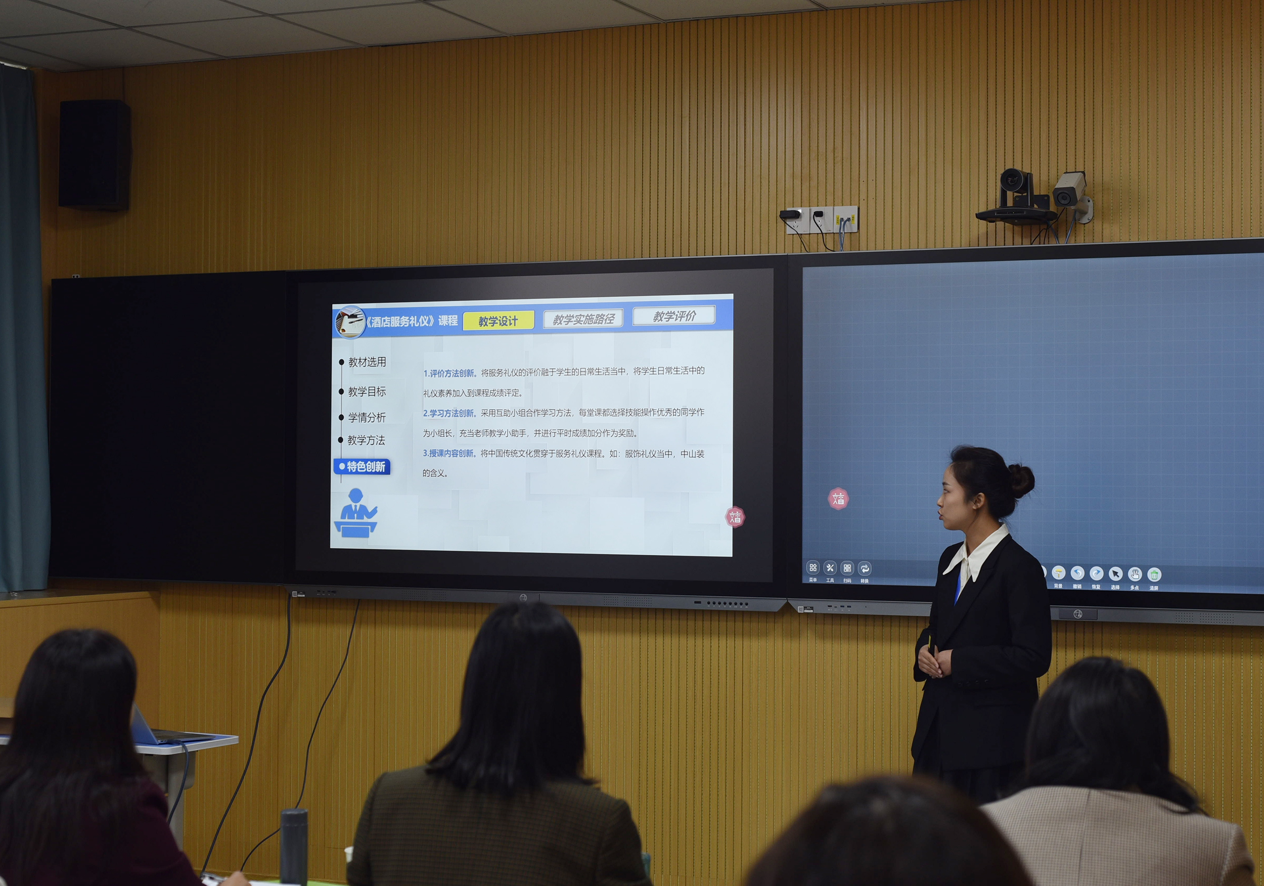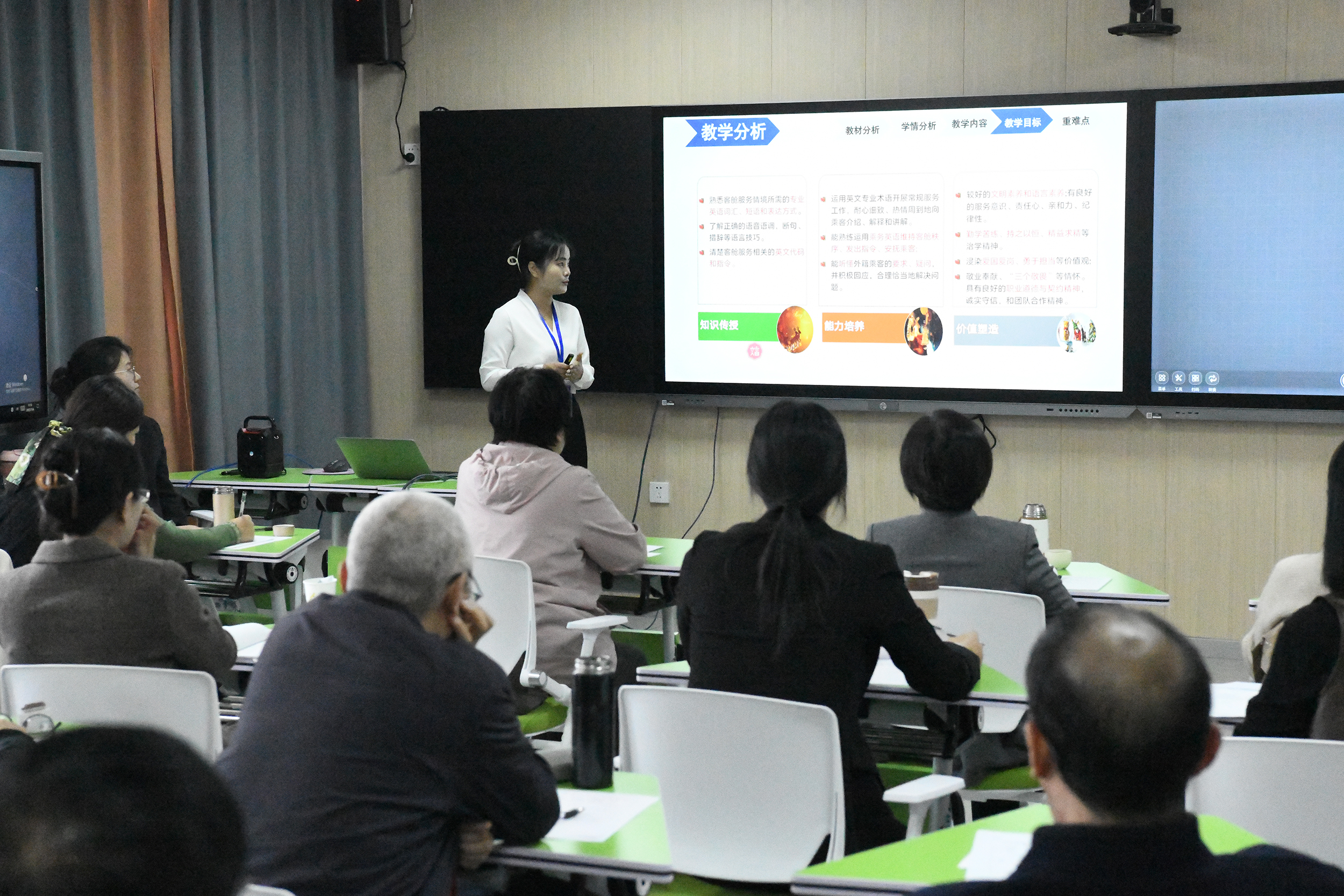 大赛于11月8至9日正式举行,比赛场所设置在我校“智慧教室”。137名选手分为四组同时进行比赛,相关领导及参赛领队在观摩室进行观摩。按照河南省教育厅相关文件规定,选手进行5分钟说课、10分钟无学生教学展示和5分钟现场答辩。比赛中,参赛教师将精心设计的课程内容与教学过程一一展现,突破传统课堂教学模式,创新职业教育课堂教学,尽展我省职业教育工作者风采。