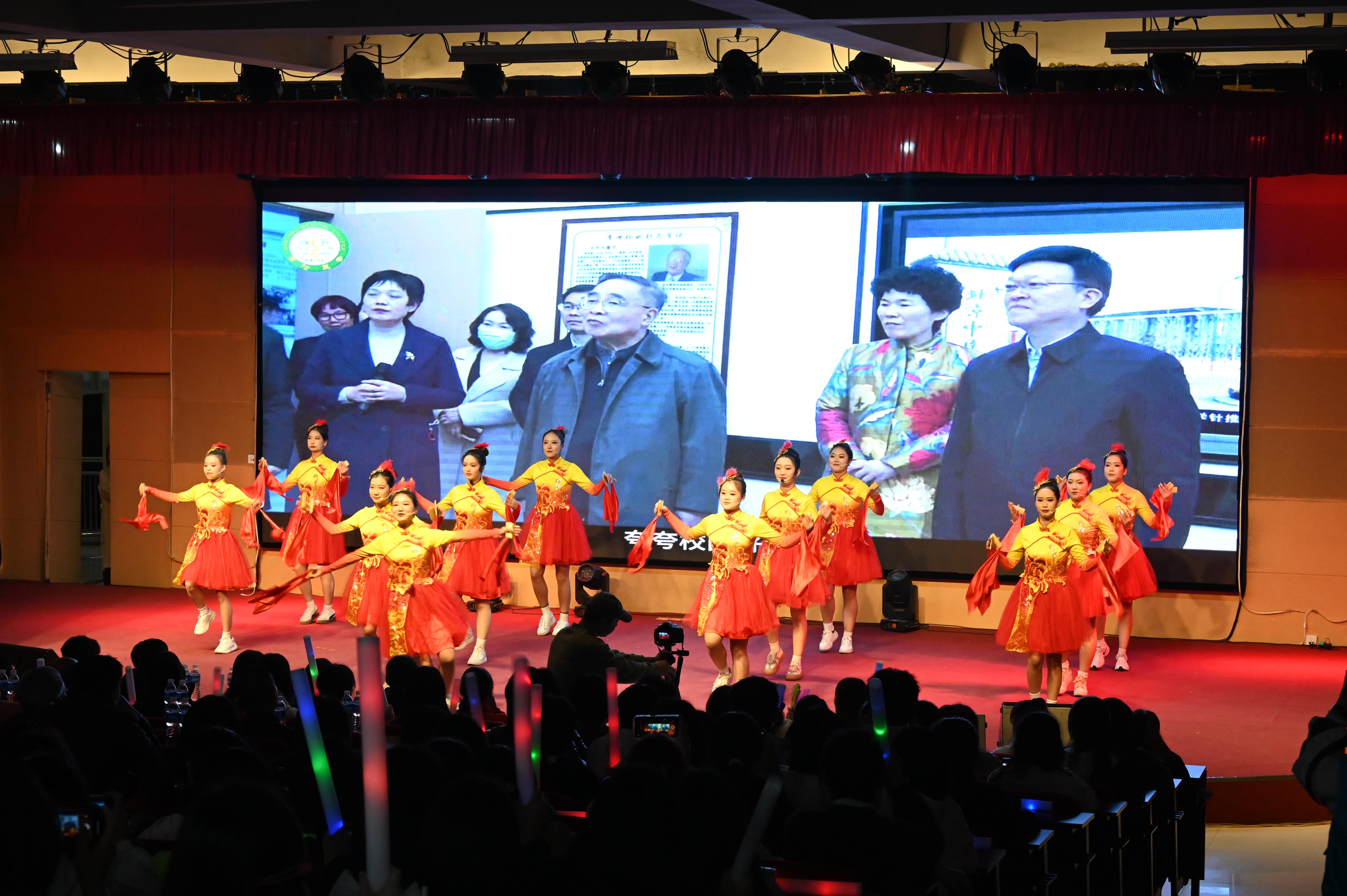 开幕式文艺演出由体教部健美操《等你来》拉开帷幕。《医圣颂》通过一场跨越千年的对话,让同学们切身感受仲景先师一生勤求古方、博采众长的精神;国家一级演员刘修元带来的《戏曲经典唱段联唱》让观众感受传统文化的魅力;快板舞《心灯点亮新希望》表达仲景学子对学校的热爱和对美好未来的憧憬;歌曲《小梦想,大梦想》美妙动听;节目《骁》表现青年一代怀揣梦想、报效家国的壮志豪情。演出在张艳老师演唱的《春风十万里》中落下帷幕。