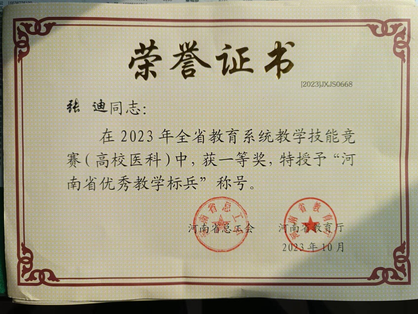 本网讯(文/校工会 程小果)近日,河南省总工会、河南省教育厅公布了《关于2023年河南省教学技能竞赛获奖情况的通报》(豫工文〔2023〕107号),我校康复医学系张迪老师获得高校医科类一等奖,体育教学部李俊杰老师获得高职文科综合类一等奖,两位老师均荣获“河南省优秀教学标兵”称号;卫生管理系蔡金伟老师获得高职文科综合类二等奖,公共教学部余悦老师获得高职文科综合类三等奖。