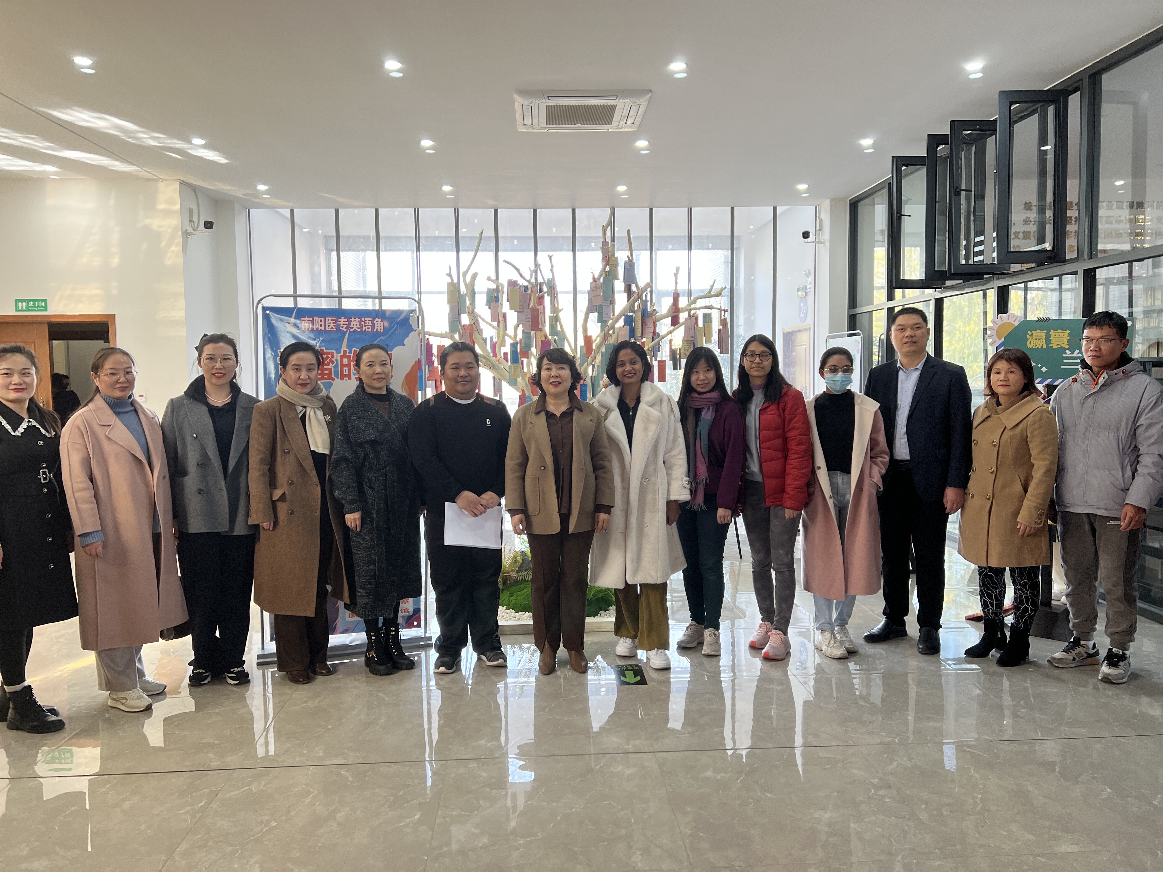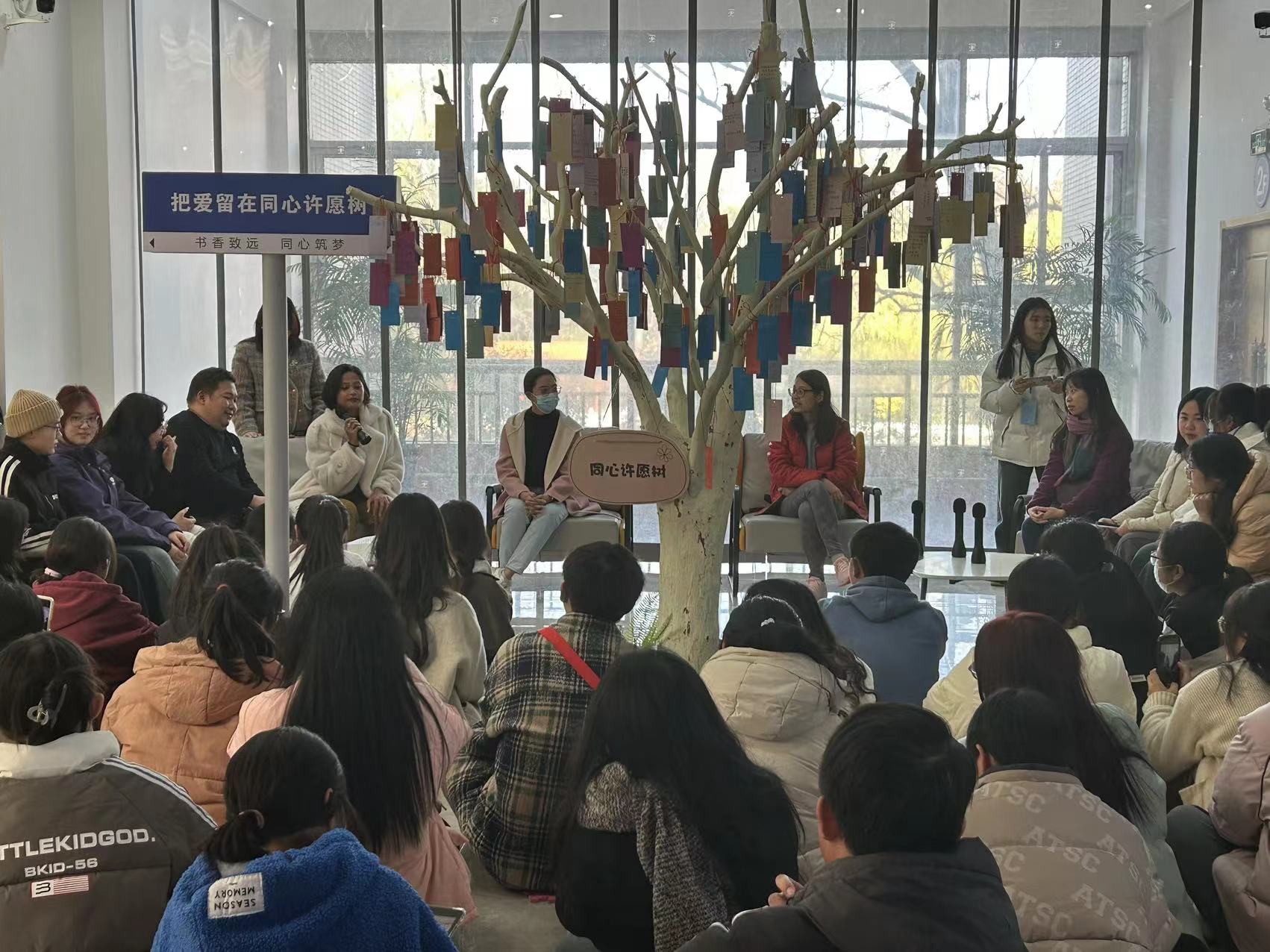 本网讯(文/国际教育学院 余雪)12月6日下午,我校在仲景西区图书馆二楼英语角举办第5期英语角活动,活动由国际教育学院、药学系和图书馆联合举办。本期英语角活动的主题是甜蜜的家——心灵的港湾暨“点亮心灯”心理健康公益活动。纪委书记刘金云、外事处处长范卫杰、图书馆馆长周青玲、国教院院长徐晓杰出席。