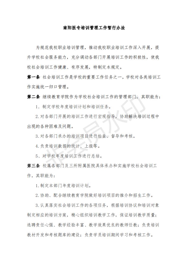 南阳医专培训管理工作暂行办法
