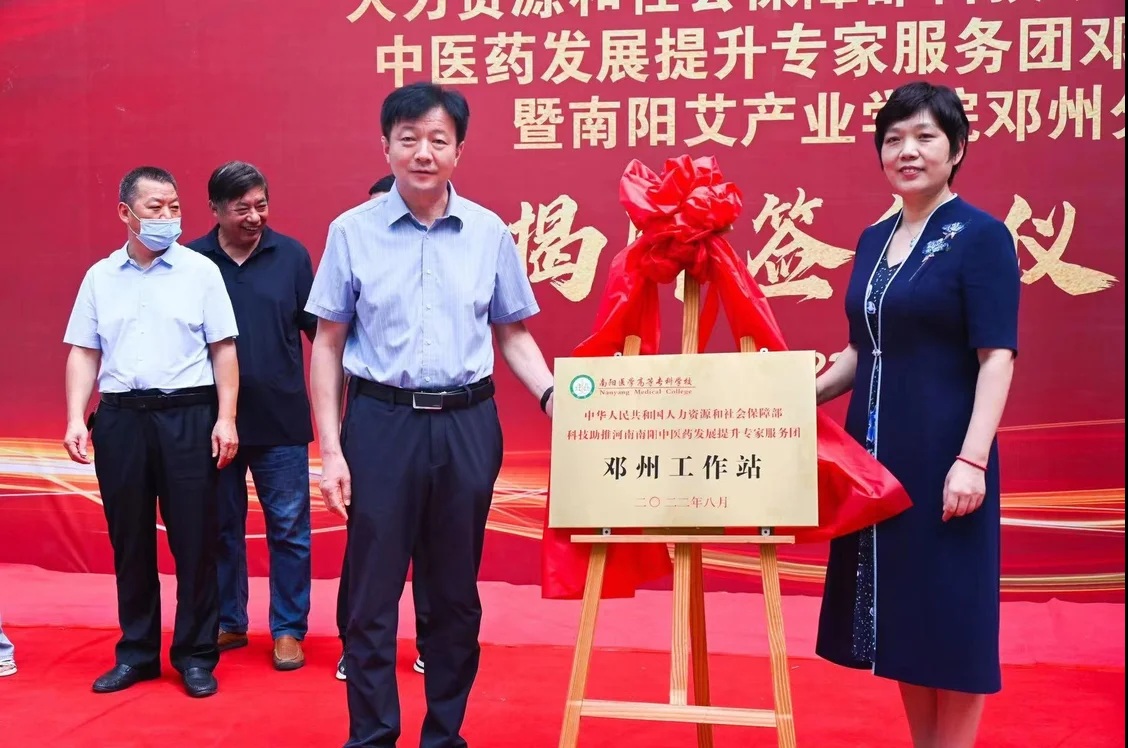 826日,人力资源和社会保障部助推河南南阳中医药发展提升专家服务团邓州工作站暨南阳艾产业学院邓州分院揭牌签约仪式,在医圣故里邓州市召开,国家级专家服务团副团长、南阳医学高等专科学校副校长范真、邓州市人民政府副市长屈云霞出席活动并揭牌。