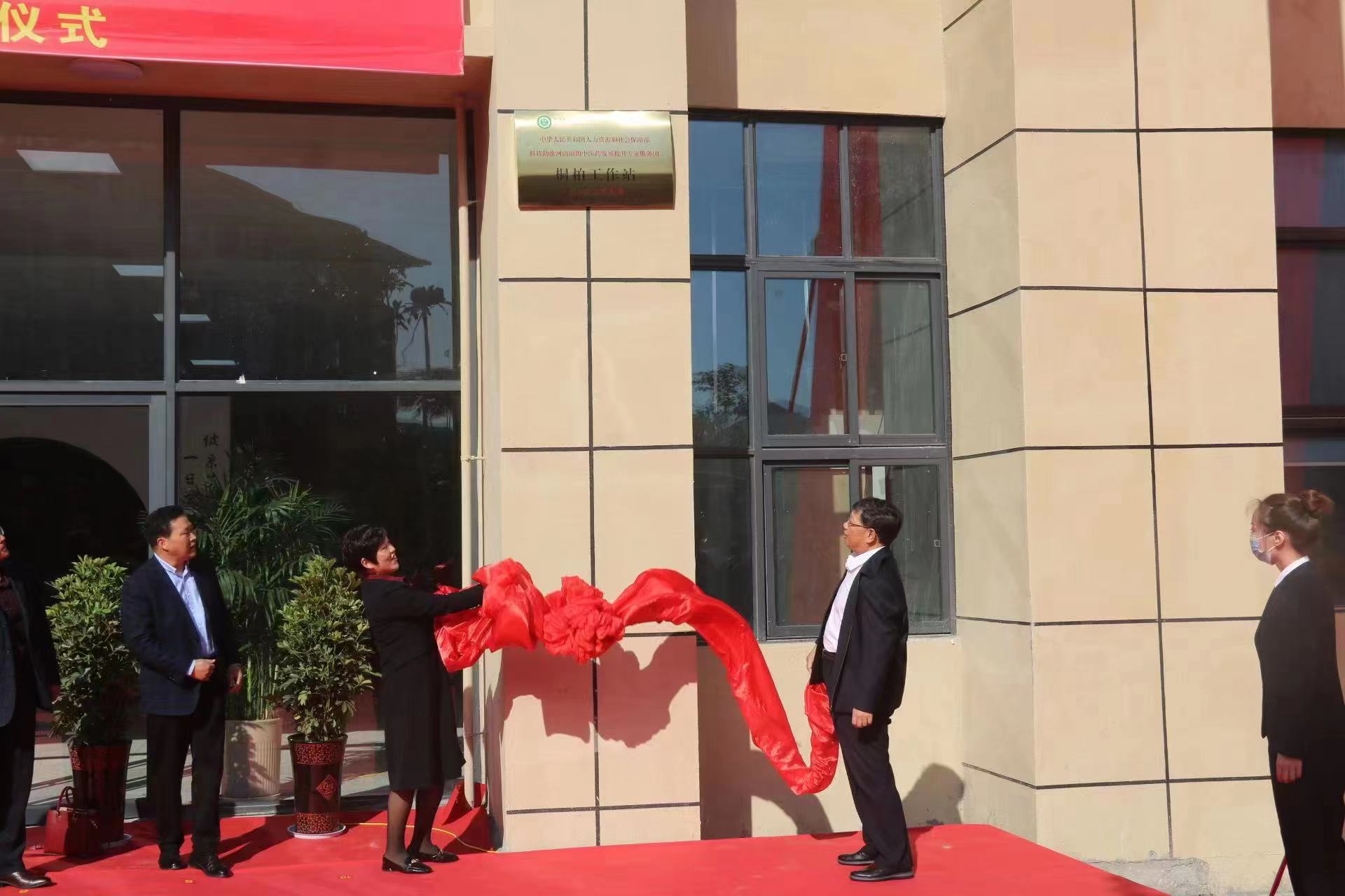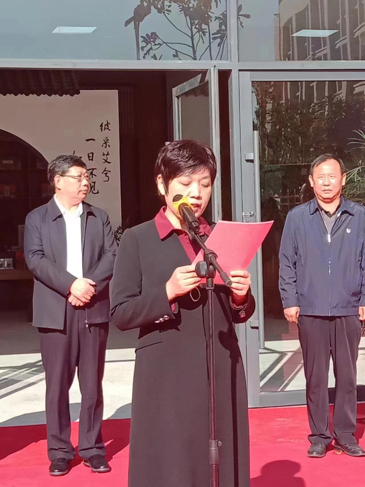桐柏县委书记贾松啸、南阳医专副校长范真分别为“专家服务团桐柏工作站”和“南阳艾产业学院桐柏县分院”揭牌。