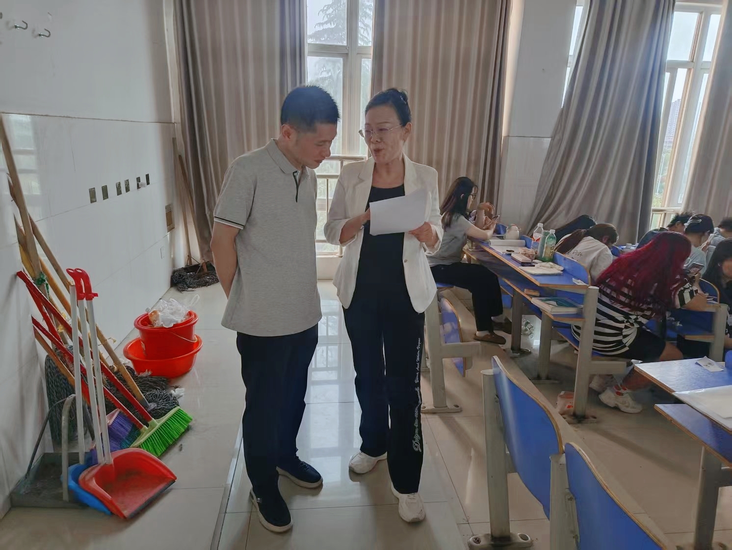 每次听课后,杜晓平与每一位授课教师现场反馈,对教师们的教学态度、教学内容、教学方法、课堂组织和教学效果给予了中肯指导,并提出了基本理论要阐释清楚,基本事实要讲述准确;充分尊重学生的课堂主体地位;向启思、启学、讲活、讲深、讲透上下功夫;增强课堂教学的思想性和理论性、生动性;增进政治认同、思想认同、理论认同、情感认同。同时与班级学习委员、纪律委员、学生代表等交流学习心得,了解教师整体授课情况。