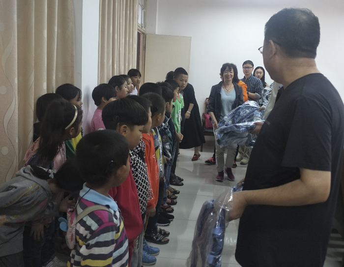 到了儿童学校,志愿者们了解学校的基本情况、学生的日常学习、生活和成长状况,提出改善学生生活、学习条件的方法,让学生们能学到更多的知识以及让他们感受到更多的温暖。志愿者为学生们发放书包并合影留念。在发书包的时候,他们收到书包的时候是如此的高兴,他们用最纯真、阳光的笑脸表达着他们的感谢并向我们鞠躬,有的口齿清晰的学生对我们说谢谢。老师们带我们参观学生上课的教室,学生志愿者们帮助计算机班的学生们完成题目。要走的时候,志愿者们都留下了对他们的寄语和期望,“加油,你是最棒的!”、“你们也是祖国的朵,祖国的未来,用心感悟、用心学习、用心生活。”。虽然他们听不到,但是我们用行动让他们感受到我们对他们的关爱。