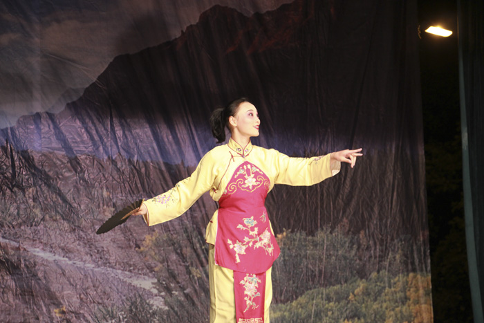 本次专场演出分戏曲知识讲座和演出两部分。河南省越调剧团国家二级演员李明老师为大家讲解了河南越调的发展历程和艺术特色等戏曲知识,并介绍了省越调剧团的悠久历史和巨大成绩。剧团演员们就戏曲唱、念、做、打的基本功向同学们作了精彩演示,赢得大家阵阵喝彩。互动环节,我校爱好戏曲的同学先后登台,在演员们的示范指导下,学习戏曲基本功,感受戏曲表演的魅力,现场气氛热烈。随后,剧团为同学们奉献了原创现代戏《花开花落花香》。该剧以15岁的春玲不怕吃苦、勇担家庭重担为主线,在养父重病、母亲出走的情况下,不离不弃的照顾养父一家,以实际行动谱写了一曲大爱大孝的青春颂歌。演员们精湛的演技、字正腔圆的唱功,为我校师生呈现了一场精彩的戏曲盛宴。