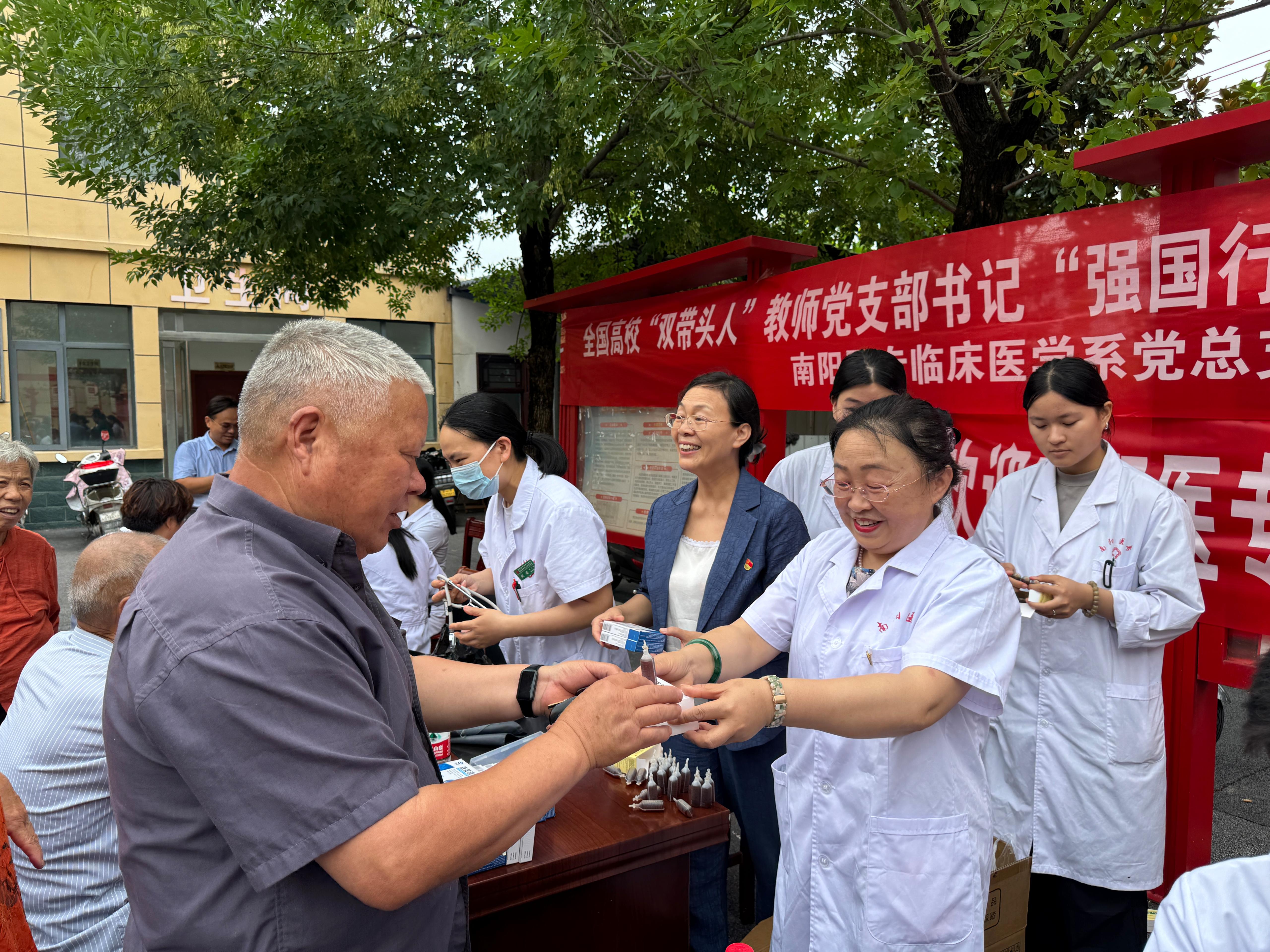 杜晓平带领由招生办公室、临床医学系等部门负责同志和二附院、口腔医学系、医学技术系专家组成的服务团,在太山庙村党群服务中心为村民问诊把脉、康复理疗、艾灸祛疾,缓解了乡村群众“看病远、问诊难”的问题。二附院党委向前来看病咨询的群众赠送了夏日常用药品。服务团队还专程赴太山庙乡敬老院,为孤寡老人提供上门诊疗。