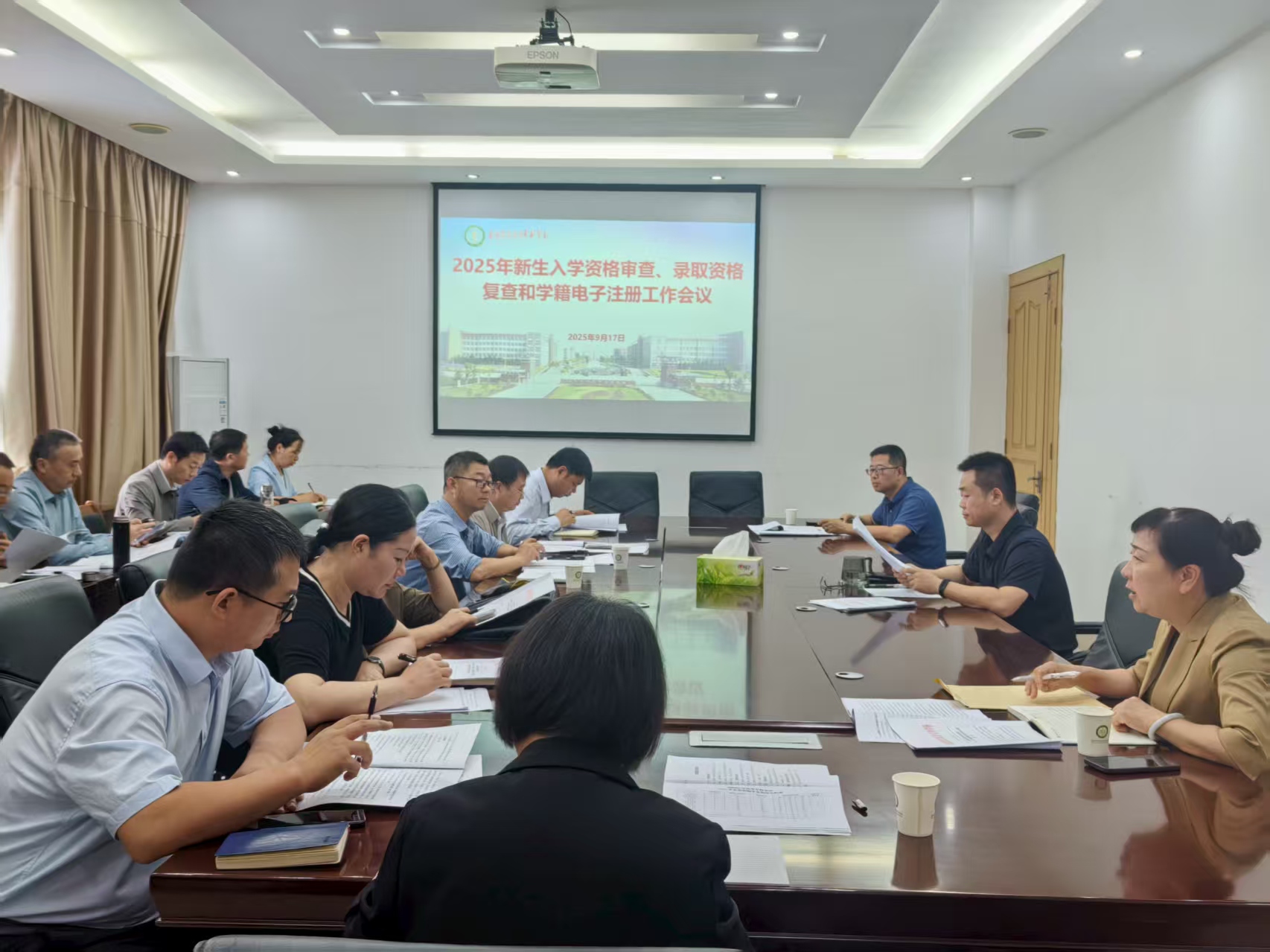 本网讯(文/学生处 胡凡 汪坤)9月17日,我校召开2025年秋期新生入学资格审查、录取资格复查、奖助学金评审工作会议。副校长王岩出席,相关部门负责同志参加。会议由学生处处长梁顺平主持。