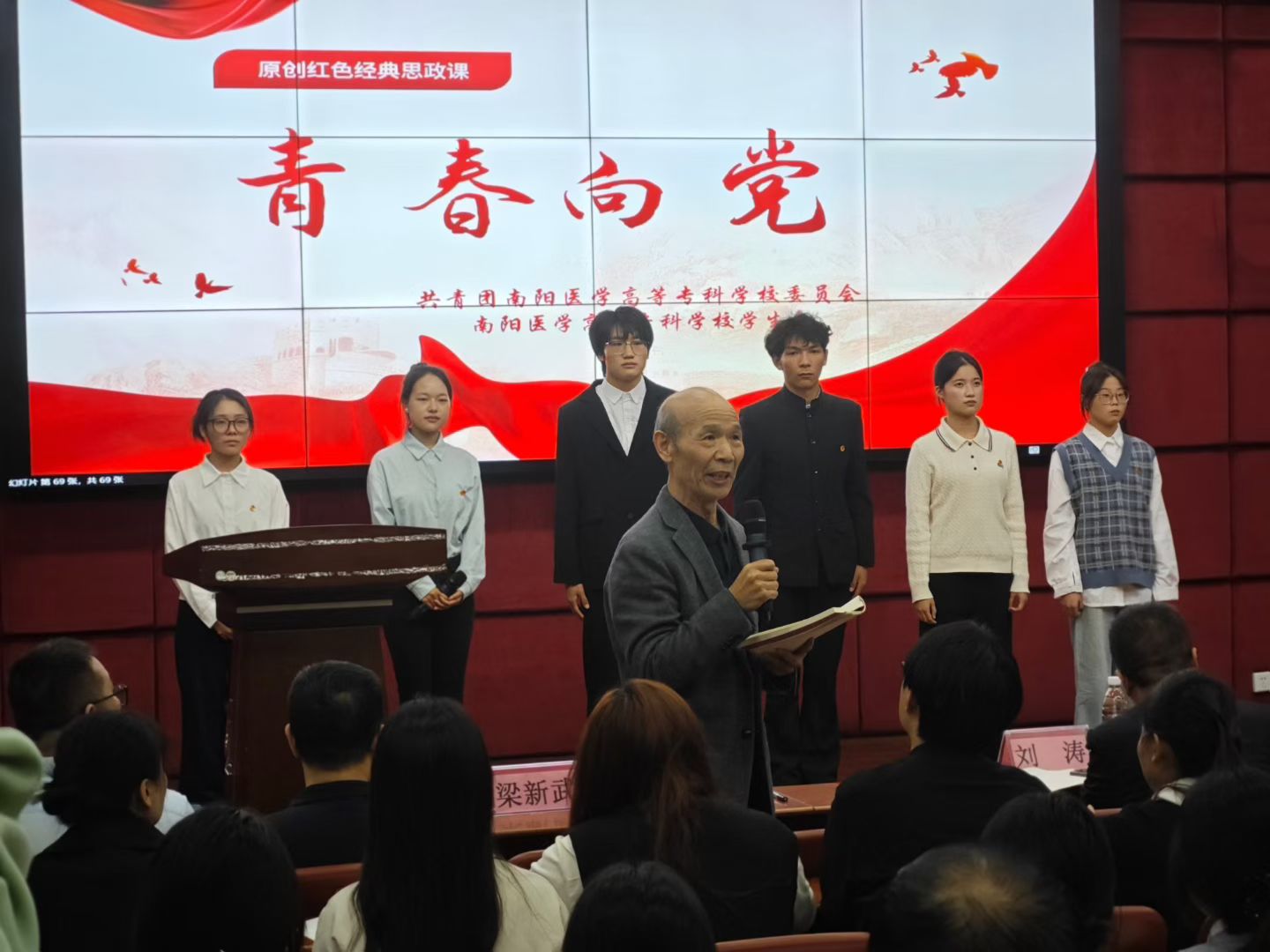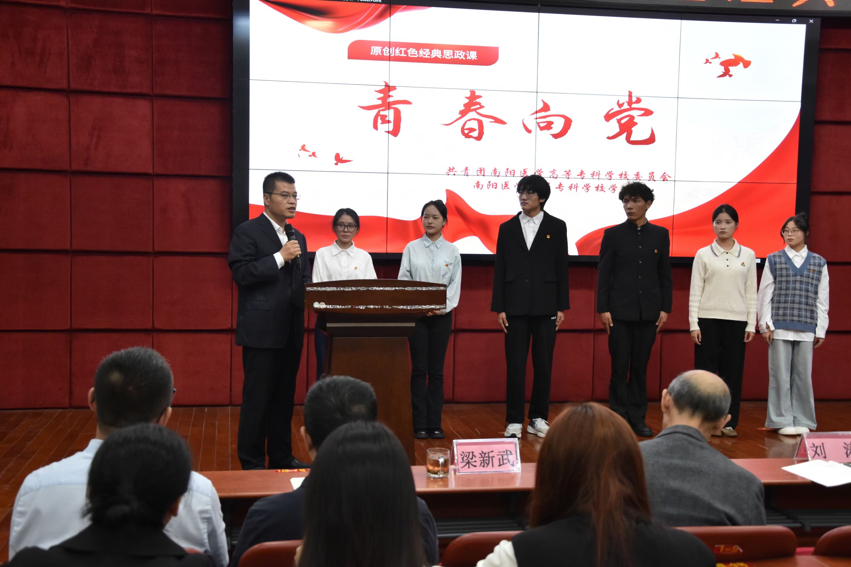 本网讯(文/团委 刘鑫)9月29日下午,一堂由青年大学生主导的原创红色经典思政课《青春向党》在南阳医学高等专科学校开讲,线上线下一万余名师生共同参与。