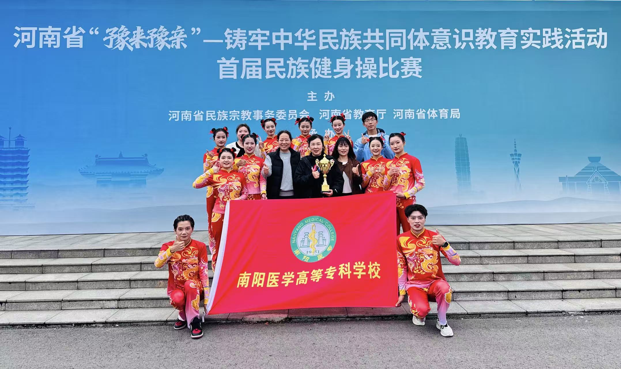 本网讯(文/体育保健与运动医学系 王洁迪)近日,由河南省民族宗教事务委员会、河南省教育厅、河南省体育局联合主办,平顶山学院承办的“豫来豫亲”——铸牢中华民族共同体意识首届民族健身操比赛落幕。此次比赛吸引全省69支代表队同台竞技。最终,我校健美操队凭借出色发挥斩获二等奖。