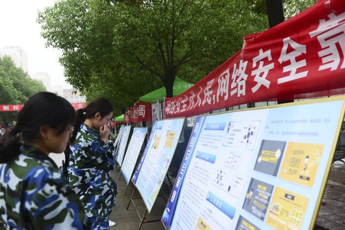 在9月18日网络安全宣传周校园日活动中,党委宣传部在校园主干道展出专题展板,图文并茂地展示了防电信诈骗、校园贷套路、电子邮件和无线网络安全使用注意事项等与大学生息息相关的内容,吸引了不少学生驻足浏览阅读。