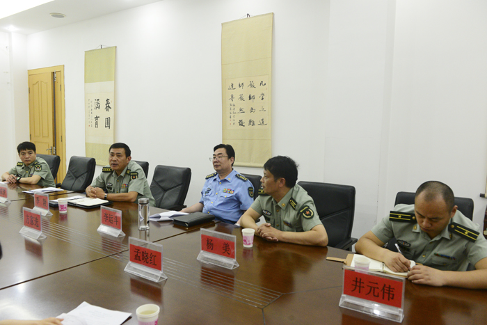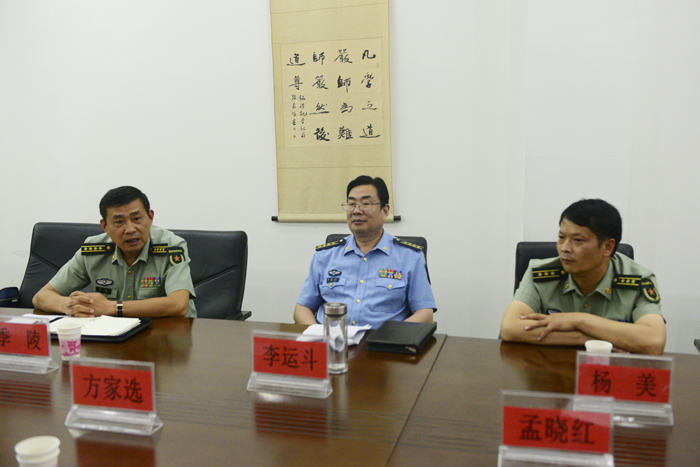本网讯(文/学生处 余飞海)6月22日上午,南阳军分区领导深入我校检查督导大学生征兵工作进展情况,实地考察了征兵工作站,查阅了相关材料,并召开了座谈会。南阳市委常委、军分区司令员季陵,政委李运斗,动员处处长卢成轶,校领导方家选、郭万周,卧龙区武装部领导杨美、王金宝和我校武装部负责人以及各系院党总支书记、学工办主任、征兵专干参加了座谈会。