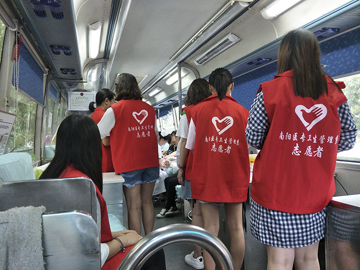 本网讯(文/卫生管理系 何伟峰)近日,南阳市中心血站的流动采血车来到我校开展无偿献血活动,我系动员学生志愿者服务队积极参加献血活动。5月24日下午,在李俊杰老师的带领下,我系共有十多人积极参加义务献血活动。