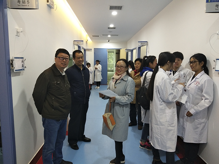 系领导高度重视毕业考核工作,研究制订了《临床医学系2018届毕业考核方案》,严把“出口关”保证毕业生质量。本次考核在执业助理医师“三站式”考核的基础上,对考核方式进行了创新,采用OSCE(客观结构化临床考试)多站式考核,将理论考核和技能考核有机结合起来。考核分为理论、病例分析、病历书写、内科技能和外科技能五站,学生持“通关卡”按考场安排逐站考核。理论考核采用手机在线考试,病例分析采用笔试,病历书写要求学生提交一份手写大病历,技能考核项目现场随机抽签。年前投入使用的临床医学模拟中心首次承担了毕业技能考核,使用天堰OSCE考试系统进行考场编排,教师手持iPAD对学生的操作和口述进行逐项评分,学生可通过候考区大屏幕或考站门口iPAD实时查看考试进度和成绩。技能考核使用了医学模拟人、医用模型等现代设备,并首次采用经过培训的学生SP(标准化病人)。整个考试过程规范有序,师生反响良好。这次毕业考核求真务实,勇于创新,探索出了一条有效的综合考核方式,取得圆满成功。