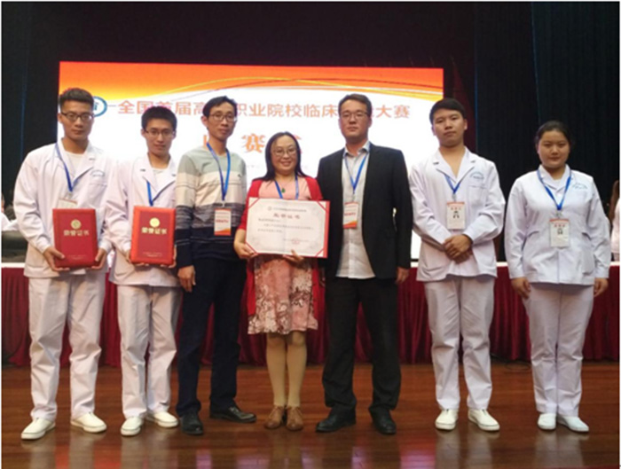 临床医学系获悉比赛信息后,立即赶赴长沙参加了赛事说明会了解比赛信息。临床医学系高度重视本次比赛,系副主任李玲、周毕军和雷云两位老师不论节假日,分工合作,精心指导。教务处、设备处、总务处给予大力支持,仪器、耗材及时到位。备赛期间,还得到了政教部冯晓青主任,护理系吕云玲主任、吴俊晓、吴文秀和苏芳静老师,中医系周小琳副主任及实训室老师的热心帮助、大力支持。参赛学生密切协作、沉着应对,充分展示了我校临床医学专业学生扎实的理论基础、过硬的技能水平和良好的风貌。(编审/李峰松 摄影/临床系)
