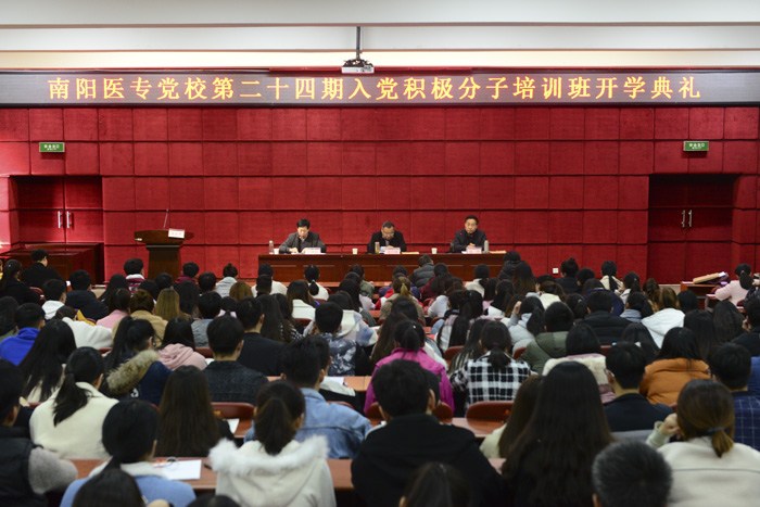 本网讯(文/组织部 刘萍)11月28日下午,南阳医专党校第二十四期入党积极分子培训班,在主校区图书馆五楼多媒体会议室举行开班典礼。校党委副书记逵应坤,党委组织部部长、党校副校长张浩,校长办公室主任、党校校务委员江学法及部分涉学系部党总支和带队老师参加了开班典礼。开学典礼由张浩主持。