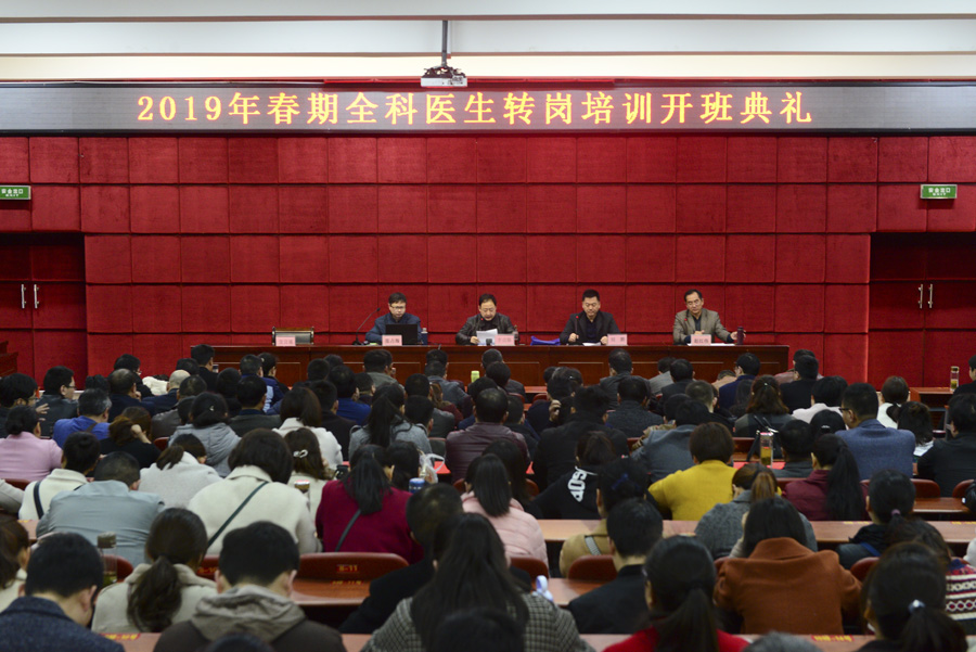 本网讯(文/成教院 刘涛)3月14日上午,河南省2019年春期全科医生转岗培训开班典礼在我校图书馆五楼报告厅举行。继续教育学院院长李贞保出席典礼并致辞,400多名全科医学员参加典礼。