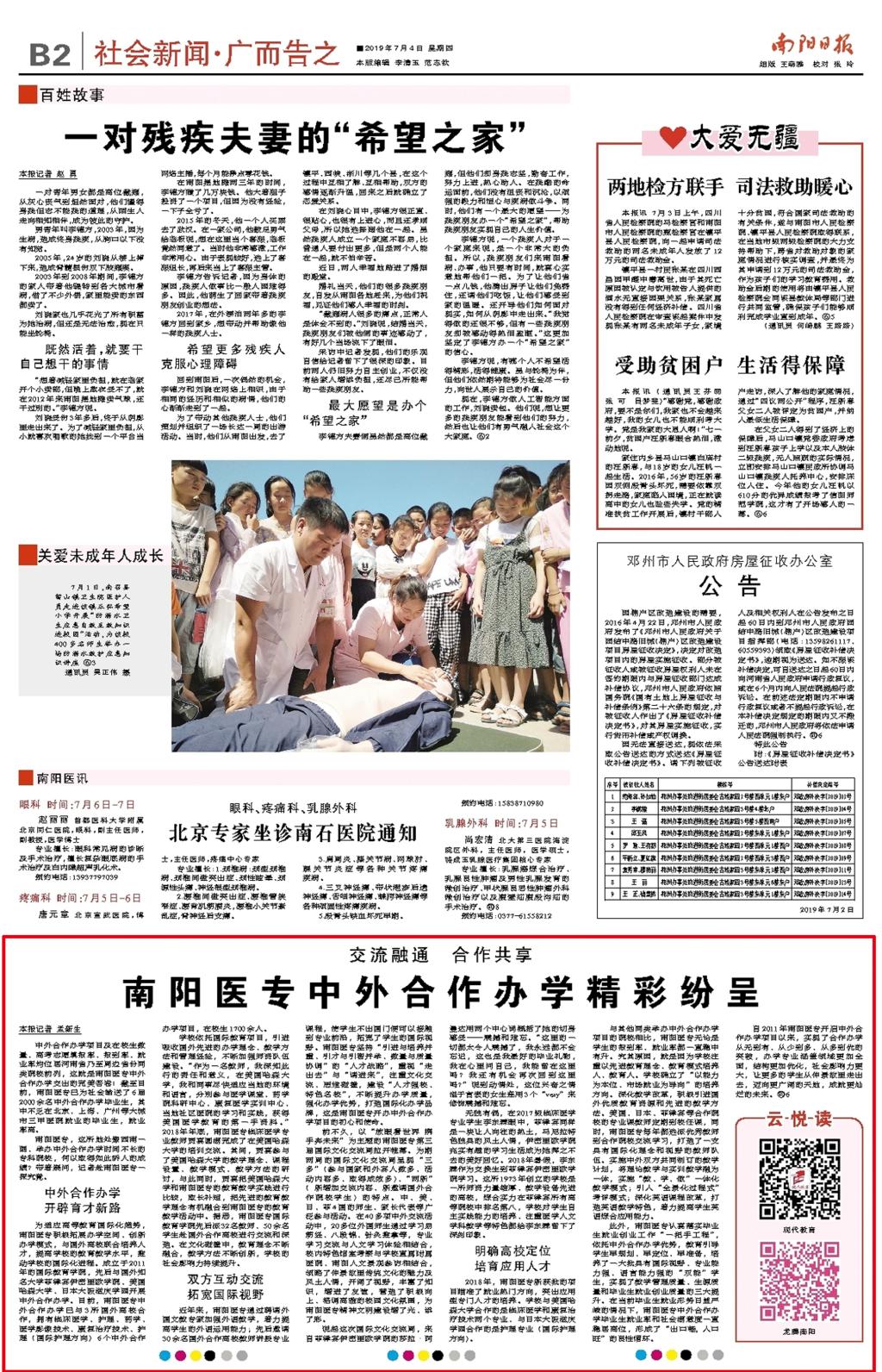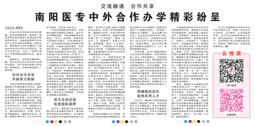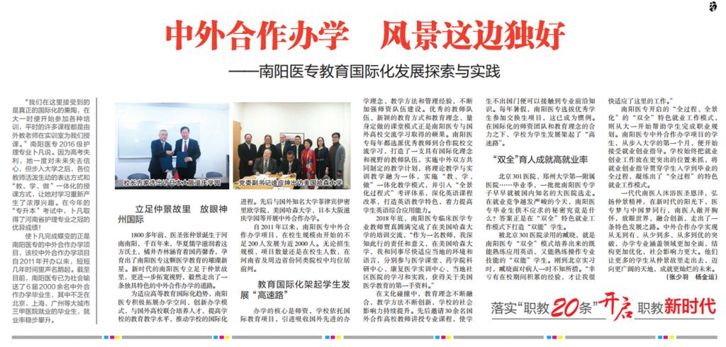 上一条:中国教育报、南阳日报、南阳晚报等主流媒体纷纷报道我校中外合作办学成绩 下一条:针灸骨伤系举办2019届毕业生毕业典礼