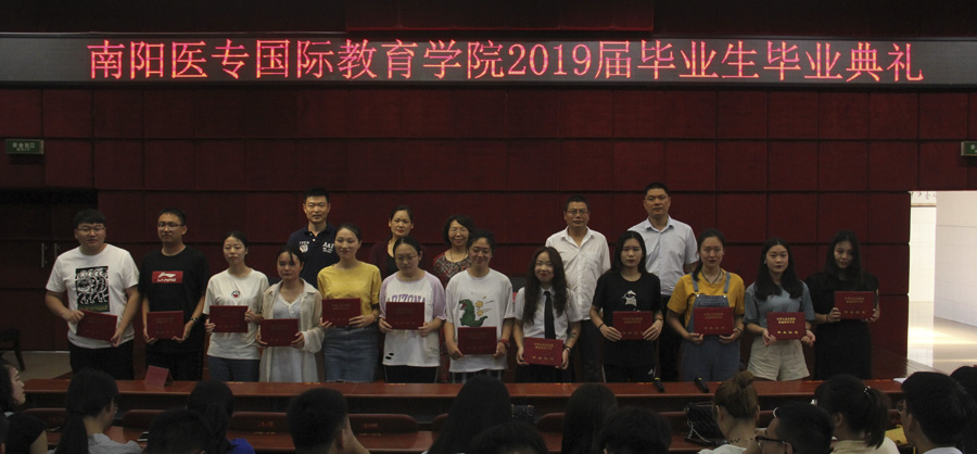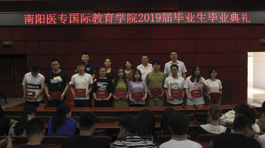 范卫杰宣读河南省教育厅关于表彰2019年河南省优秀应届大专毕业生的决定和威客电竞·(中国)VK GAMING,国际教育学院准予2019年应届毕业生的决定。李连焕介绍国际教育学院2019届毕业生的整体情况,本届毕业生558人,有11人获得省级优秀毕业生、三好学生和优秀学生会干部,79人通过专升本,33人投身“三支一扶”锻造火热青春。李弋希望大家谨记校训,做一个医德高、医术精,受人尊敬的人。希望大家常会母校看看。院领导给优秀毕业生颁奖。