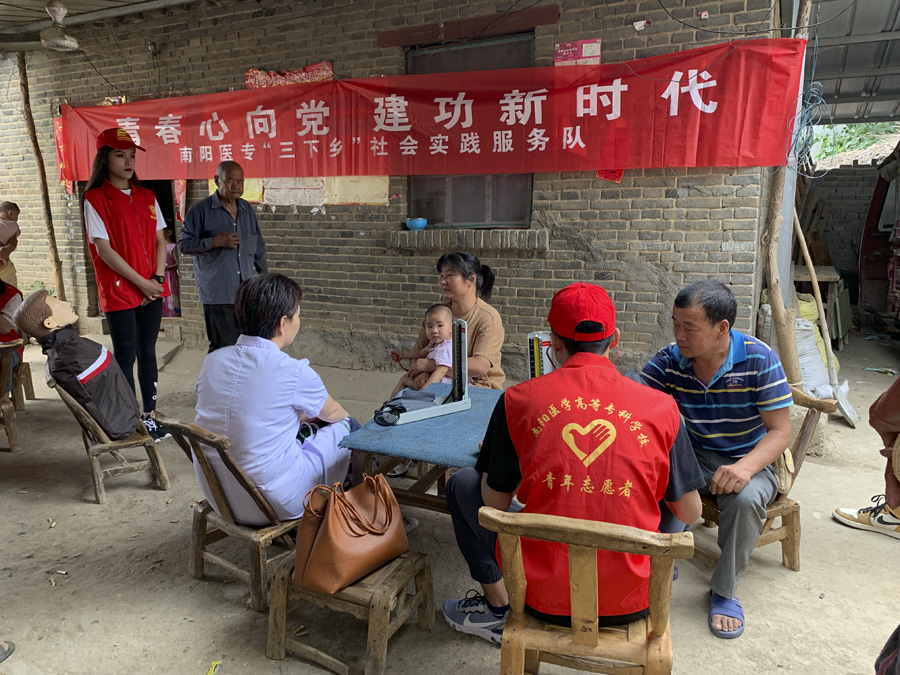 本网讯(国际教育学院 习茵)7月11日,我院开展以“青春心向党,建功新时代”为主题的暑期“三下乡”社会实践活动,党总支书记张少羽、院长李弋、副院长范卫杰、党政办主任张蕊、团总支书记习茵、辅导员、志愿者服务队伍和一附院专家张玉参加活动。