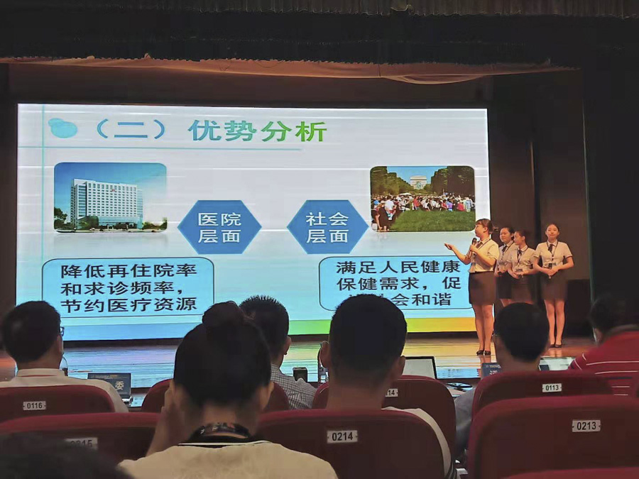 我省55所职业院校的14685个项目、53766名学生报名参加本届大赛。经过校级初赛、学校推荐,769个团队进入省赛的网络评审阶段,最终有150个项目通过网络评审进入现场决赛,我校两个项目入选现场决赛。项目确定后,学校领导高度重视,就业中心及护理系迅速行动,成立大赛集训指导小组,两个团队的8名学生迅速返校,在赛前仅有的两天时间内,师生齐心协力,不畏酷暑,废寝忘食,从项目书的完善提高到PPT的制作;从视频的录制到现场的演讲及模拟答辩;从精神风貌到仪表仪态,每个细节都多次演练,反复推敲,精益求精,以求最佳。