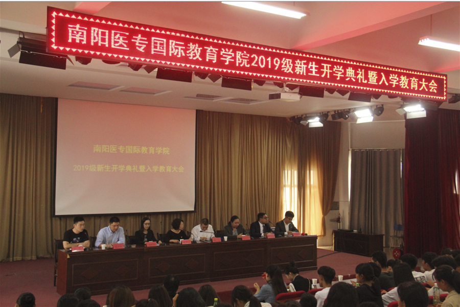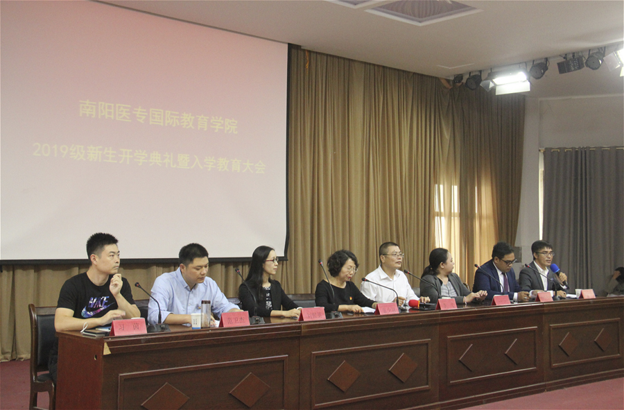 本网讯(文/国际教育学院 张蕊)9月20日下午,国际教育学院在仲景东区礼堂举办2019级新生开学典礼暨新生入学教育大会。我校合作院校代表、学院领导班子、全院教职工、2019级班主任和全体新生参会。大会由党总支书记张少羽主持。