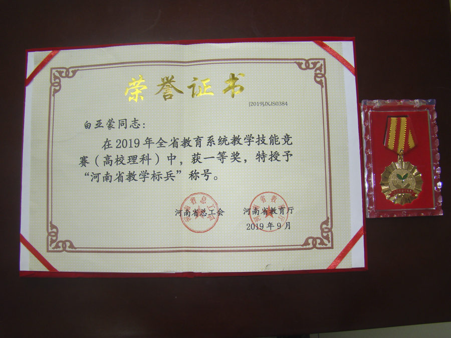 本网讯(文/工会 朱东民)近日,河南省总工会、河南省教育厅联合下发《关于表彰2019年全省教学技能竞赛获奖个人的决定》,我校公共教学部老师白亚蒙荣获高校理科组一等奖,并被授予“河南省教学标兵”,政治理论教学部老师李建效荣获高校思想政治组二等奖。