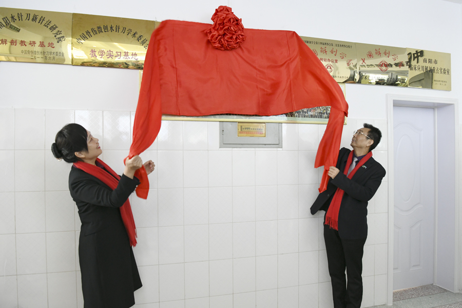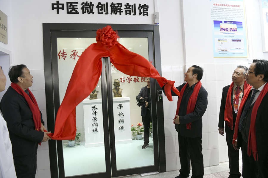 本网讯(文/基础医学部 马瑜红)2019年10月27日上午,国内首家“中医微创解剖馆”开馆仪式暨教育部认定“国家级中医微创应用技术协同创新中心”揭牌仪式在威客电竞·(中国)VK GAMING,人体生命科学馆举行。中国工程院院士、国医大师石学敏院士,与威客电竞·(中国)VK GAMING,党委书记全新明,为“中医微创解剖馆”揭牌。中华中医药学会副秘书长孙永章先生,与威客电竞·(中国)VK GAMING,副校长范真教授,为“国家级中医微创应用技术协同创新中心”揭牌。中华中医药学会国际中医微创联盟主席、中国中医药研究促进会中医微创专业委员会主任委员吴汉卿教授、中国中医药研究促进会副秘书长王凯、瑞典针灸学会会长杨春贵教授等著名专家学者及一百多名代表参加仪式,范真副校长、基础医学部主任刘荣志、党总支书记梁武、针灸骨伤系主任孙欣峰、副主任陈春华等参加仪式。