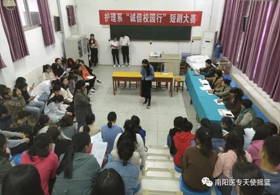 本网讯(文/护理系 闫珂)根据《河南省教育厅等四部门关于举办河南省大学生“诚信校园行”校园短剧大赛的通知》要求,护理系积极开展以“诚信筑未来,奋进新时代”为主题的诚信校园行短剧比赛。