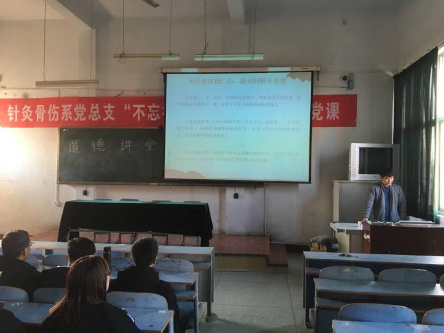 (文/针灸骨伤系 逵建澍)12月11日下午,我校在仲景西区1号教学楼505教室举办“学习道德楷模、争做模范标兵”道德讲堂。本次活动由针灸骨伤系承办,辅导员逵建澍担任主讲,100余名学生参加活动。