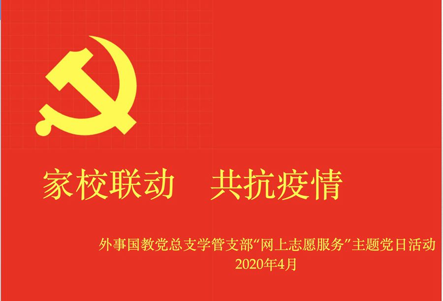本网讯(文/国际教育学院 夏灵果)外事国教党总支学管支部积极发挥支部引领作用,利用家校育人平台,立足大学生特点,结合工作实际,强化师生教育引导,于2020年4月28日晚利用钉钉平台开展“家校联动,共抗疫情”网上志愿服务主题党日活动。学管支部全体教职工、部分家长和学生代表参加。