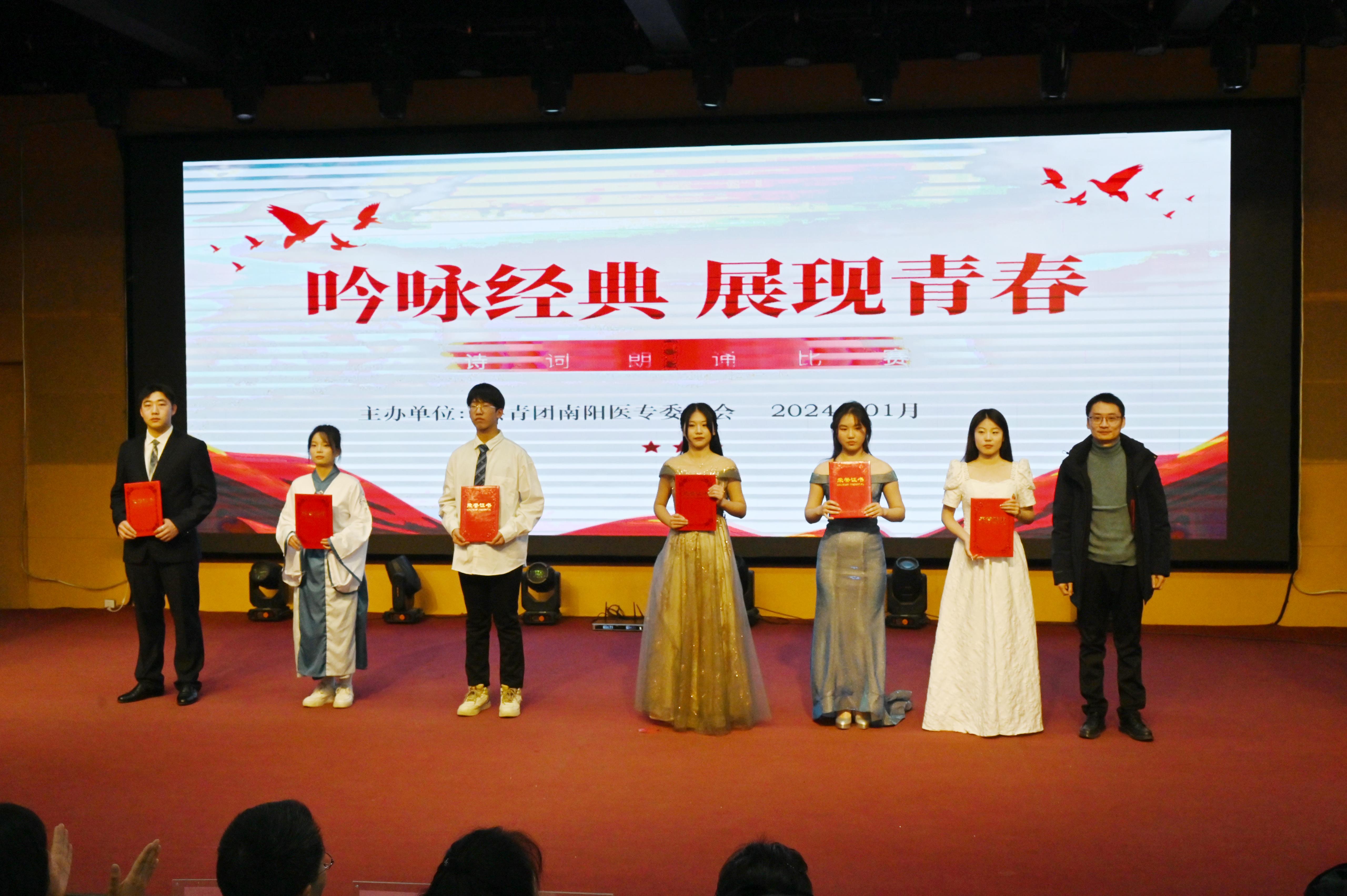 比赛现场气氛热烈,选手们慷慨激昂,诠释了对诗词的理解和热爱。经过激烈角逐,最终护理系《满江红》获得一等奖;临床医学系《将进酒》、药学系《红船》获得二等奖;口腔医学系《春江花月夜》、护理系《中国话》、国际教育学院《莫等闲 常挥旗》获得三等奖;护理系团总支、国际教育学院团总支获得优秀组织奖。